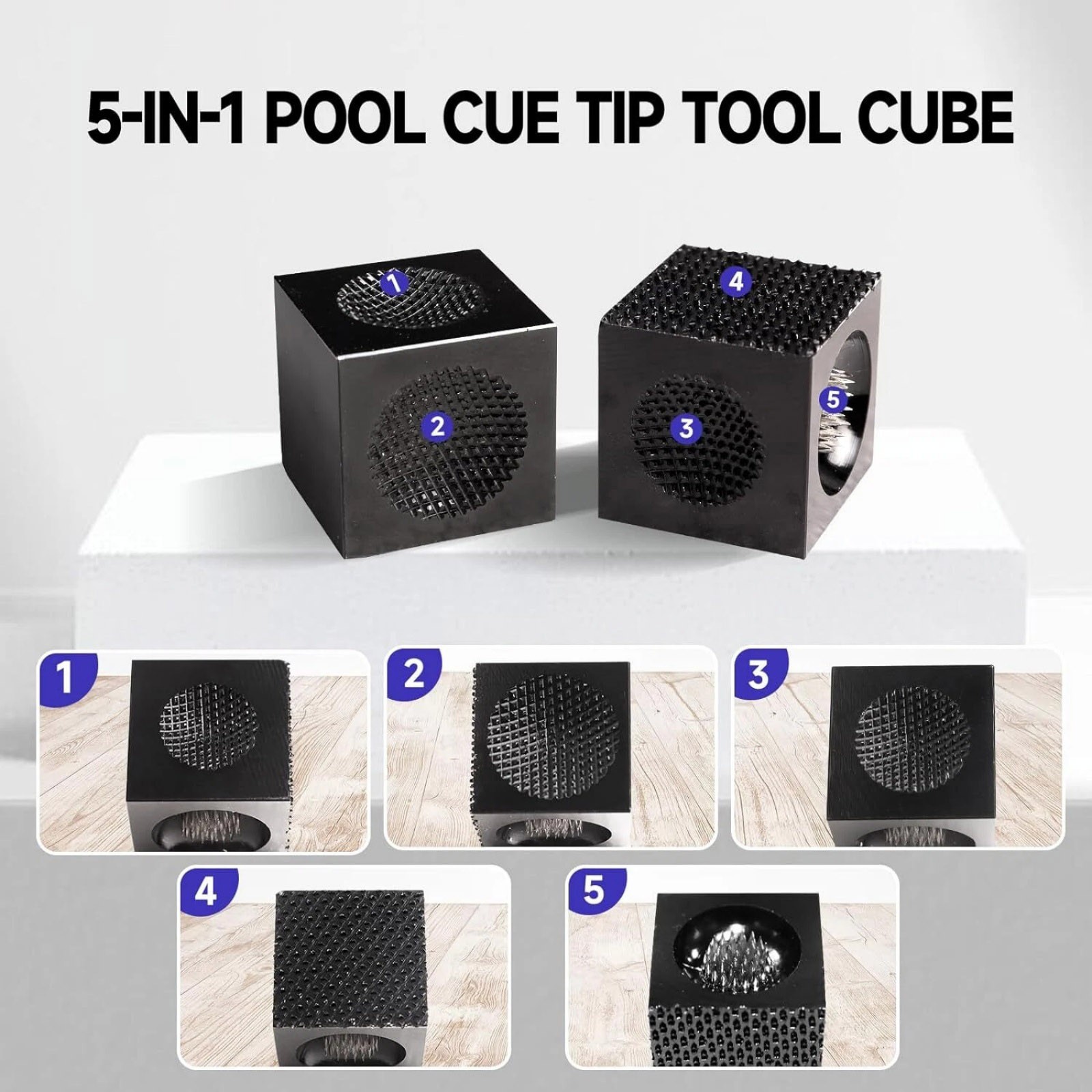 как выглядит Brand New 5-in-1 Billiard Pool Cue Tip Tool, Pick Scuffer/Shaper/Aerator Cube фото