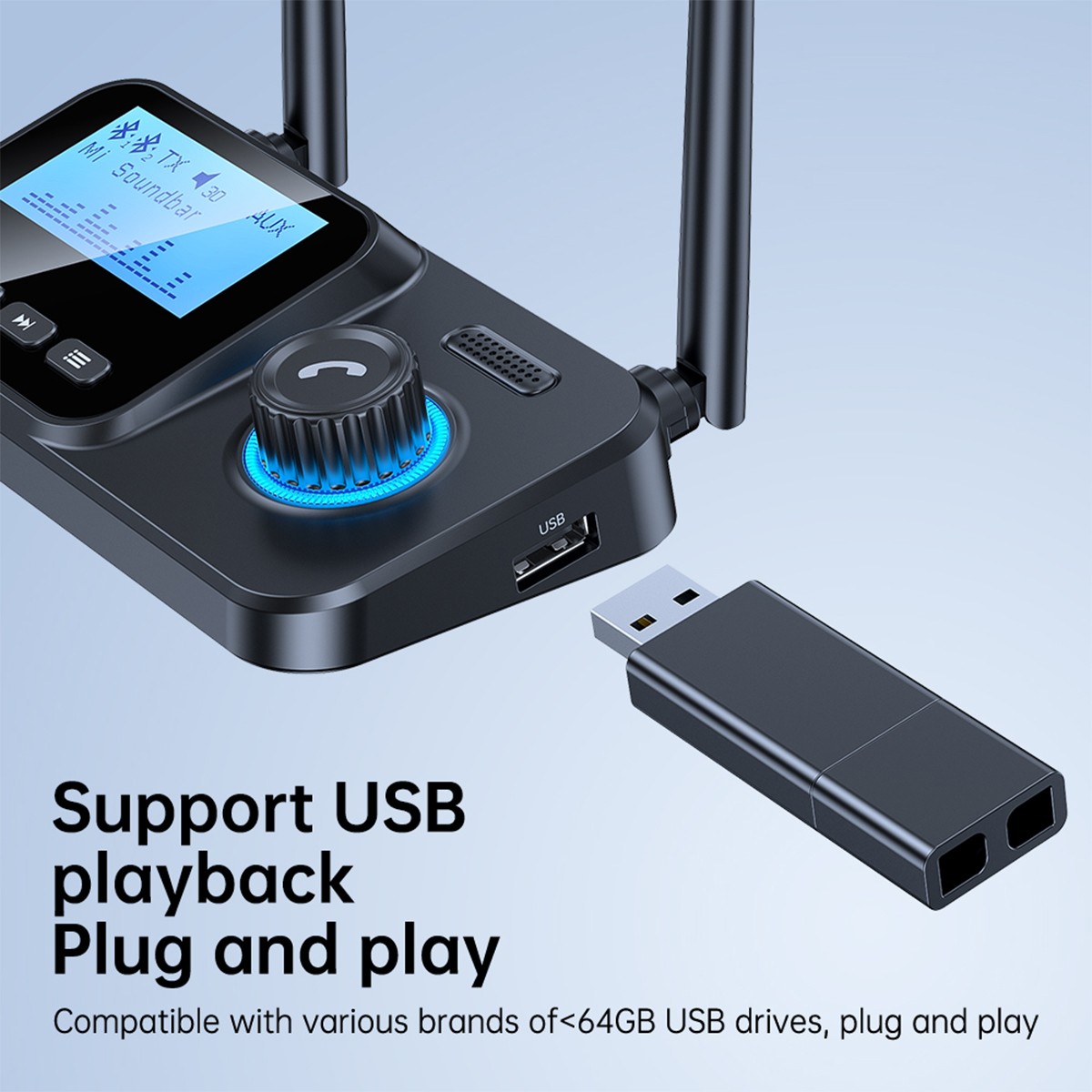 Functions: Transmit, Receive mode, USB flash drive -TF card playback Audio