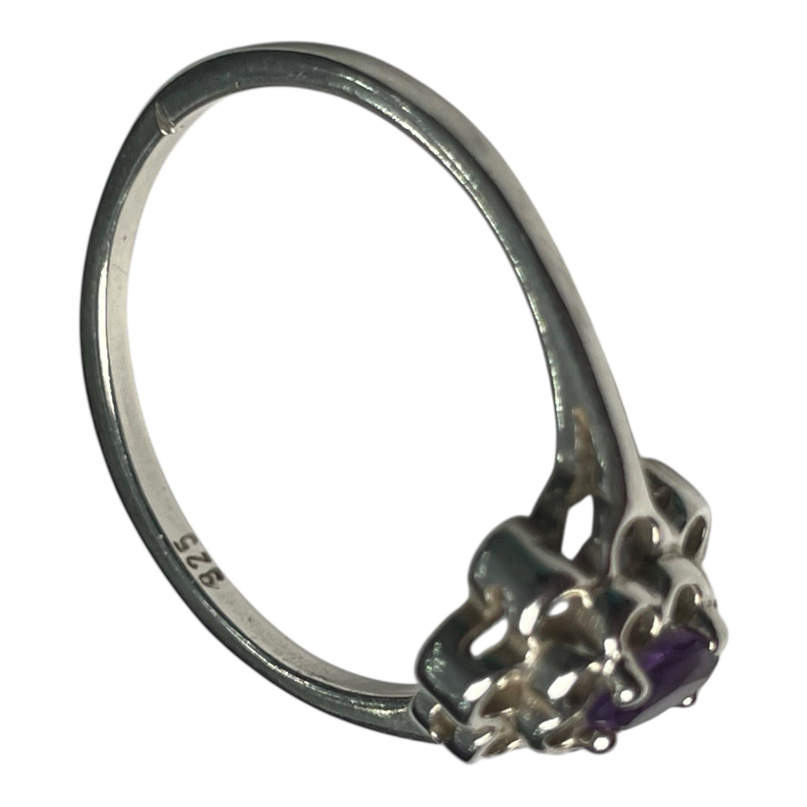 • Sterling Silver Amethyst Floral Filigree Ring Openwork Flower Design Size 8.75