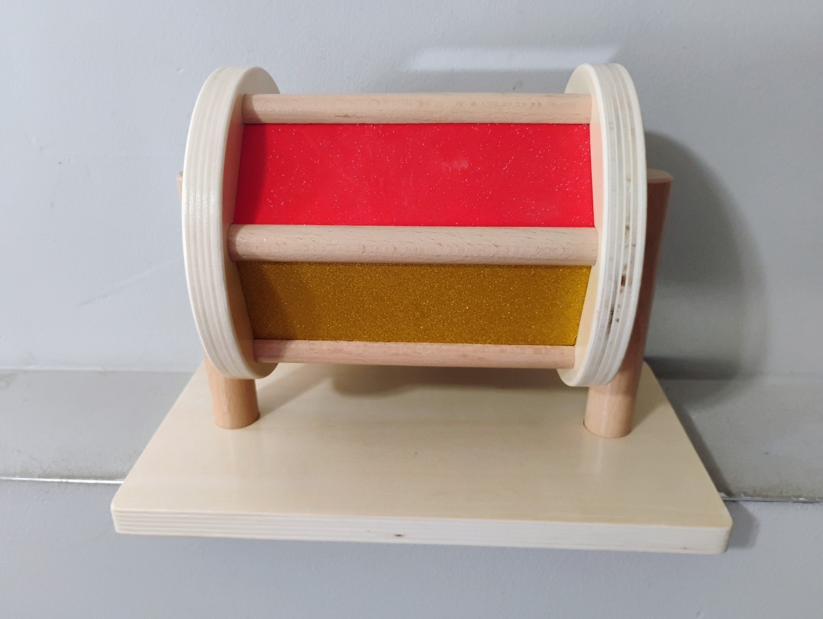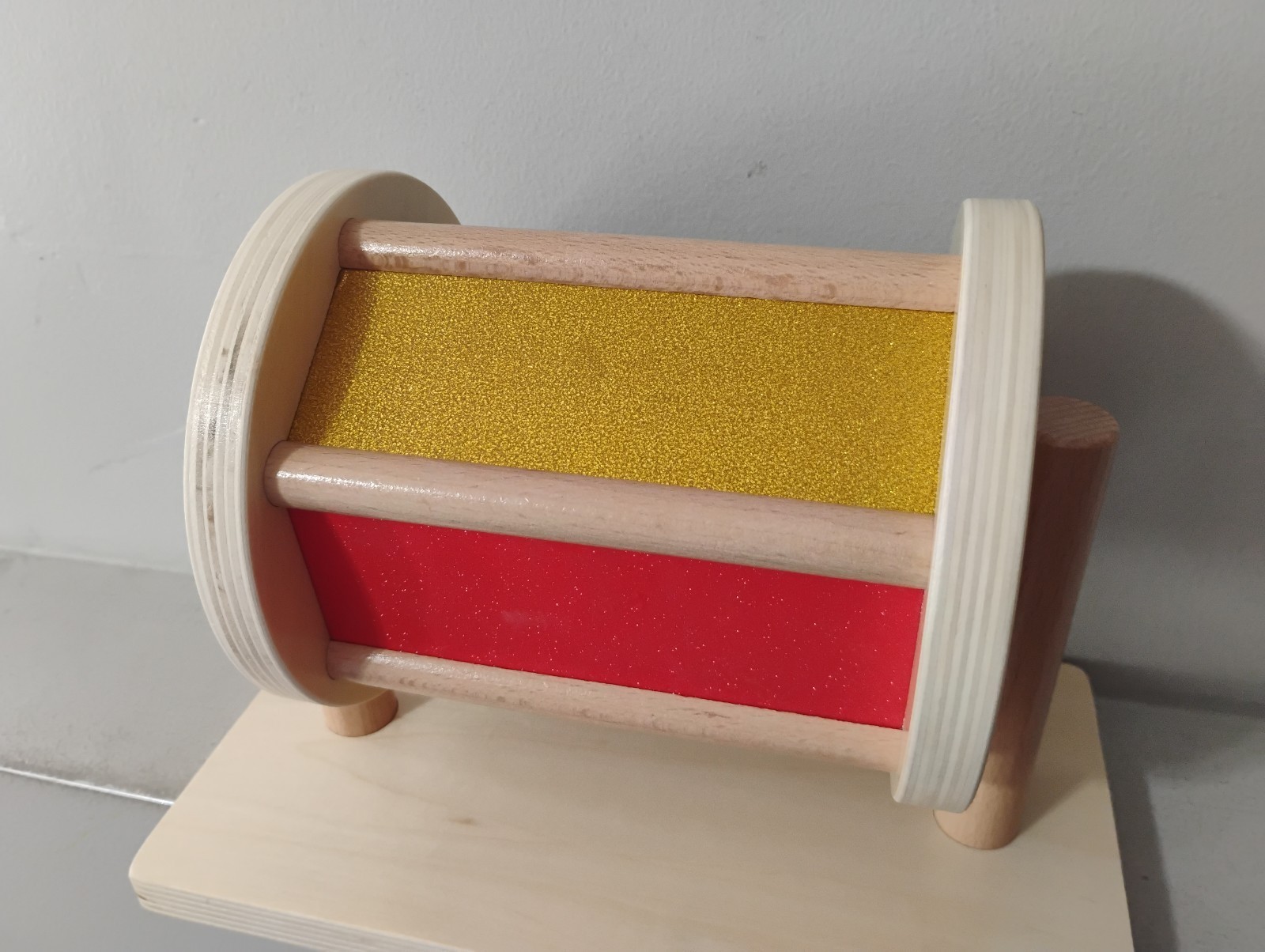 как выглядит Tiger Montessori Wooden Sensory Spinning Rainbow Drum Baby Toy фото