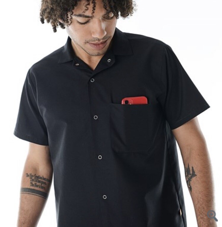 как выглядит 4 Mens Chef Works Dress Shirt XL Black Cook Short Sleeve Button Down w Pocket фото