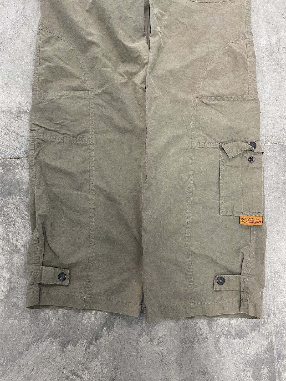как выглядит RARE Kikgirl Y2K Rave Pants Size 14 Baggy Cargo Olive Khaki Pants Mens 36-37x30 фото