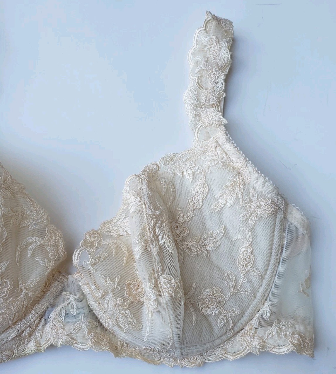 как выглядит La Perla Corsetteria Embroidered Lace Mesh Bra Size 36C Underwired Ivory фото