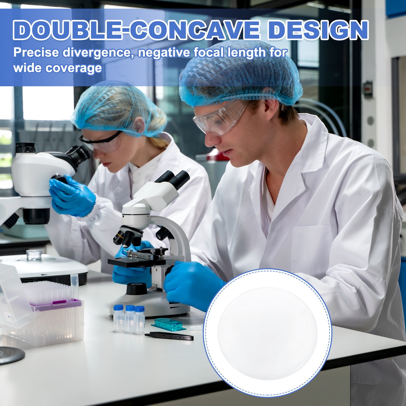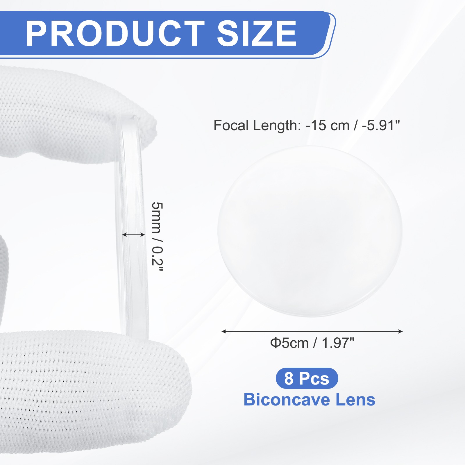 8 Pack Biconcave Lens, 5cm Dia. -15cm Focal Length Glass Lens, Clear