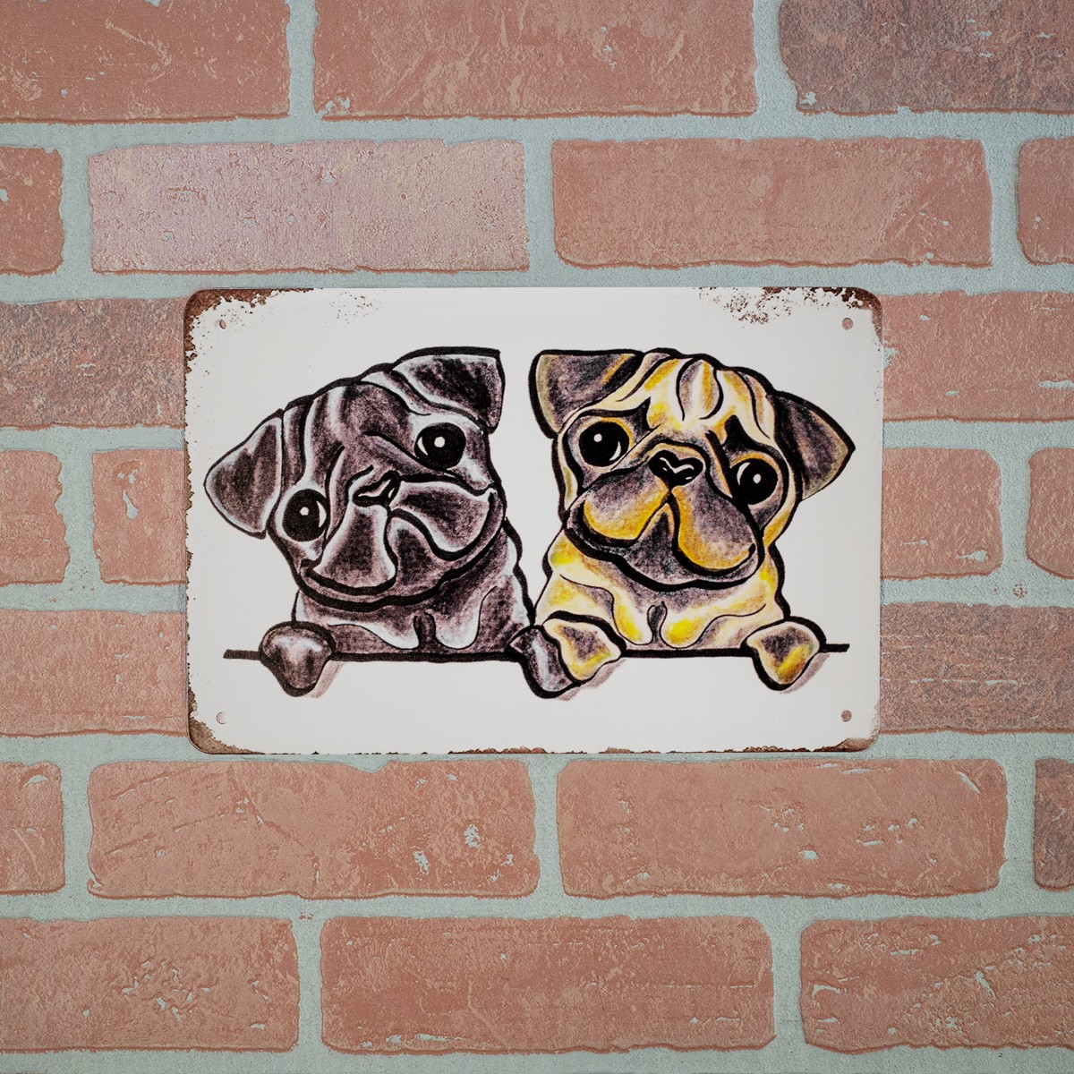 Retro 8x12 Metal Cute Pug Dog Puppies Sign Animal Pet Lover Gift Home Wall Decor