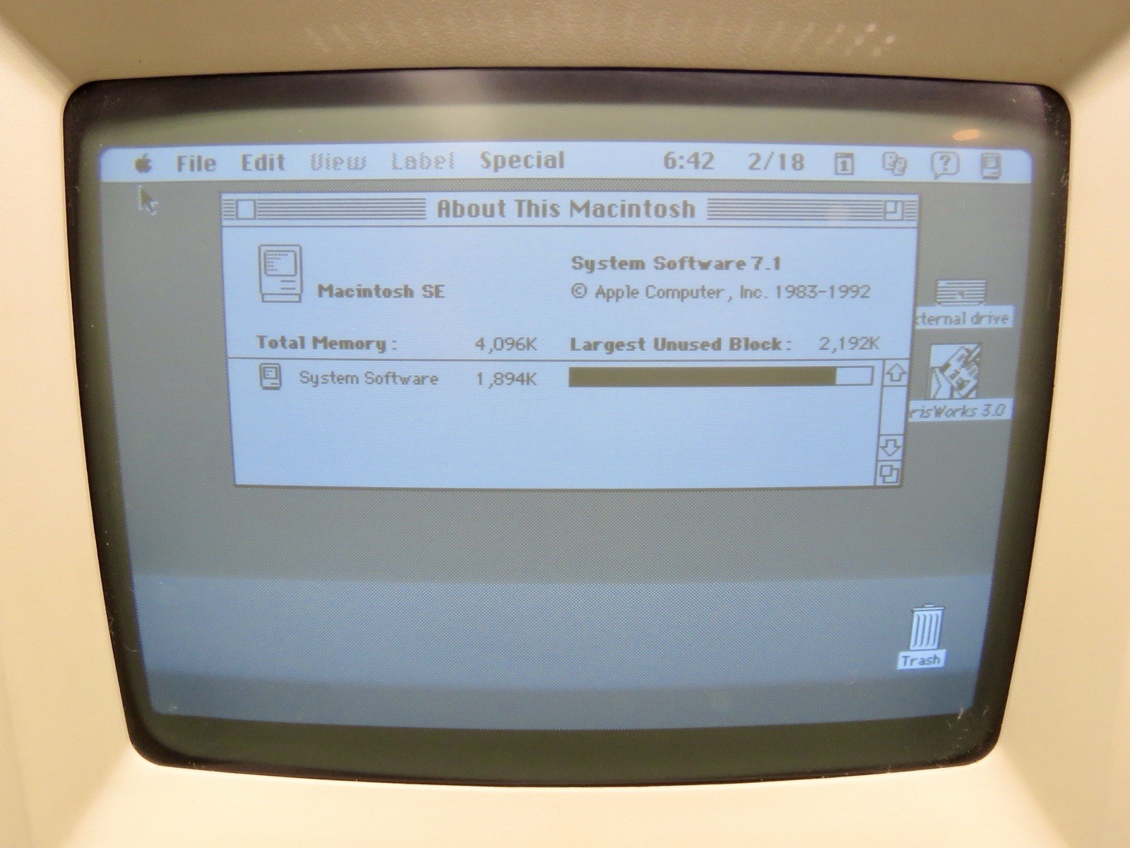 Macintosh SE Apple Computer ,OS 7.1 , 4MB RAM, HD, Mouse, Keyboard, Ext. Drive