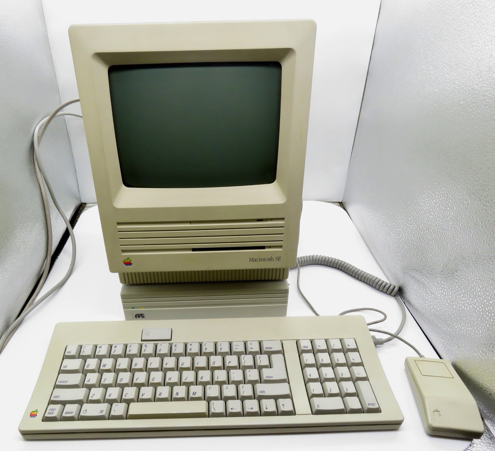 как выглядит Macintosh SE Apple Computer ,OS 7.1 , 4MB RAM, HD, Mouse, Keyboard, Ext. Drive фото