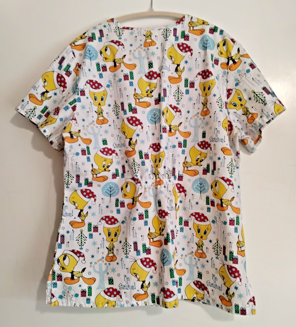 Looney Tunes Tweety Bird V-Neck Scrub Top Women's Size M