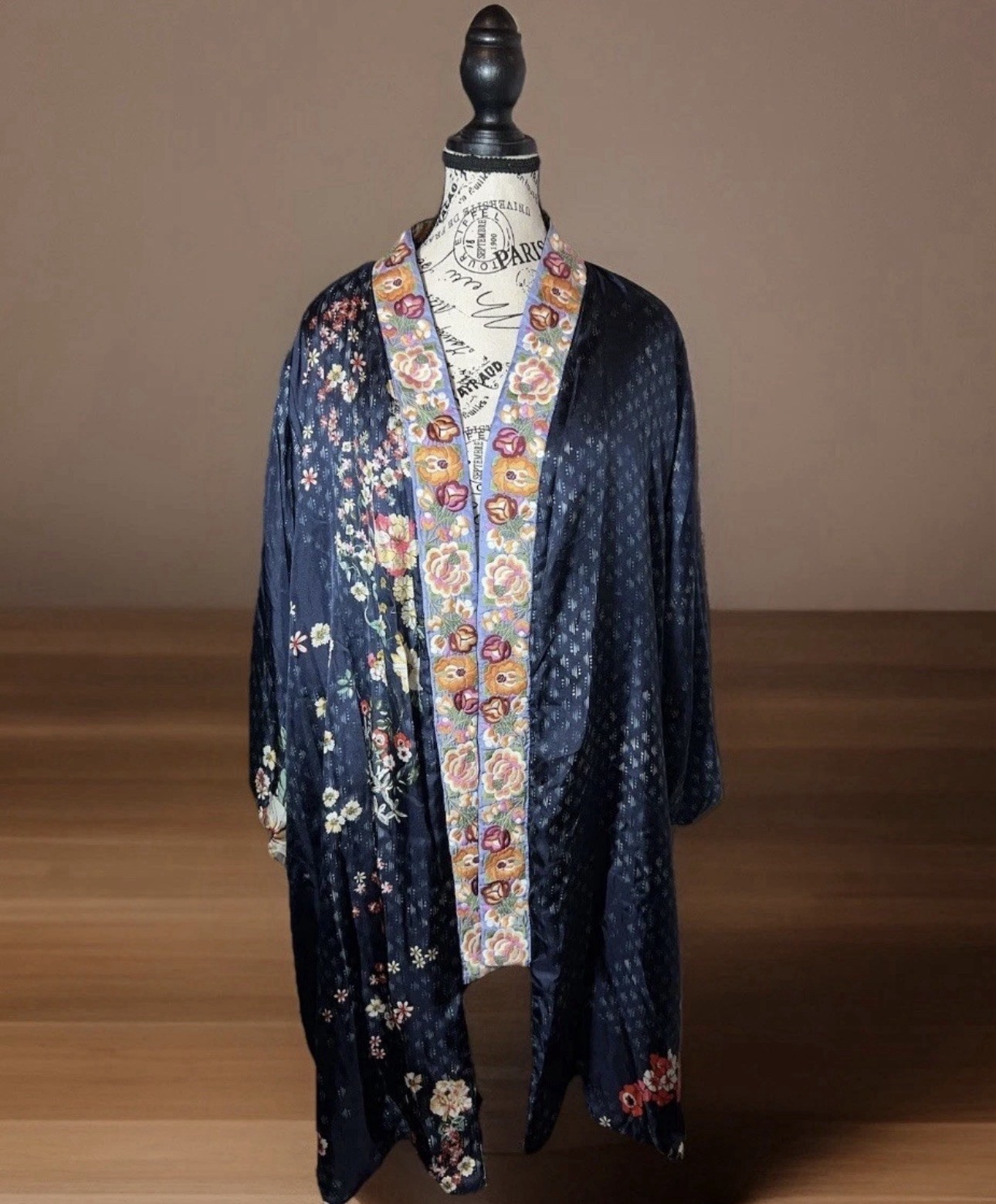 как выглядит NEW Johnny Was XL Velvet Silk Kimono Duster Jacket Wrap REVERSIBLE Floral NWT фото