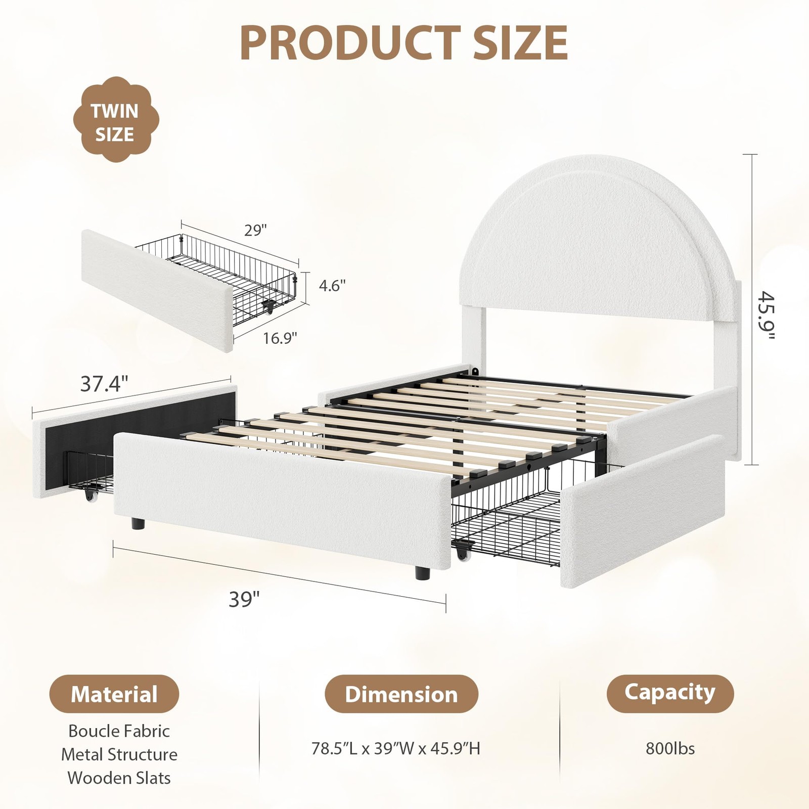Queen Full Twin Size Bed Frame ,Upholstered Platform Bed w/Headboard 2 Drawers
