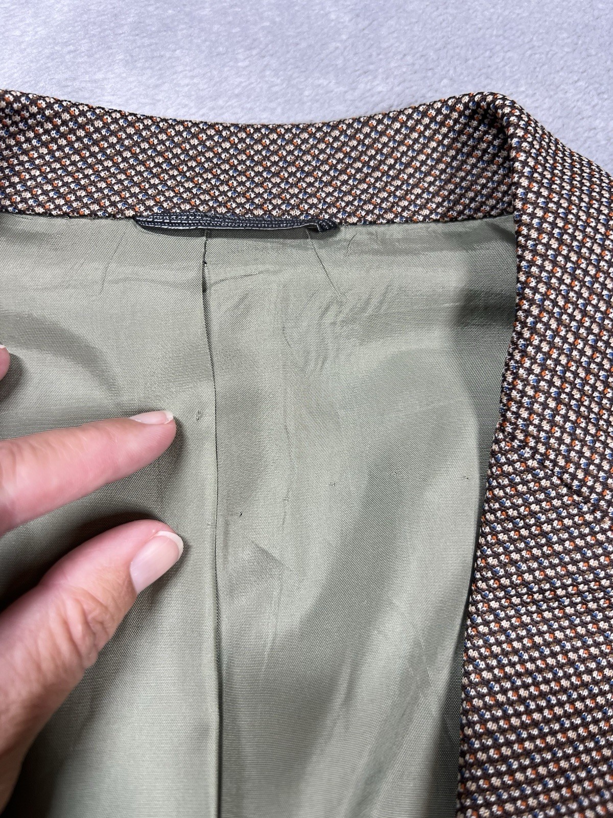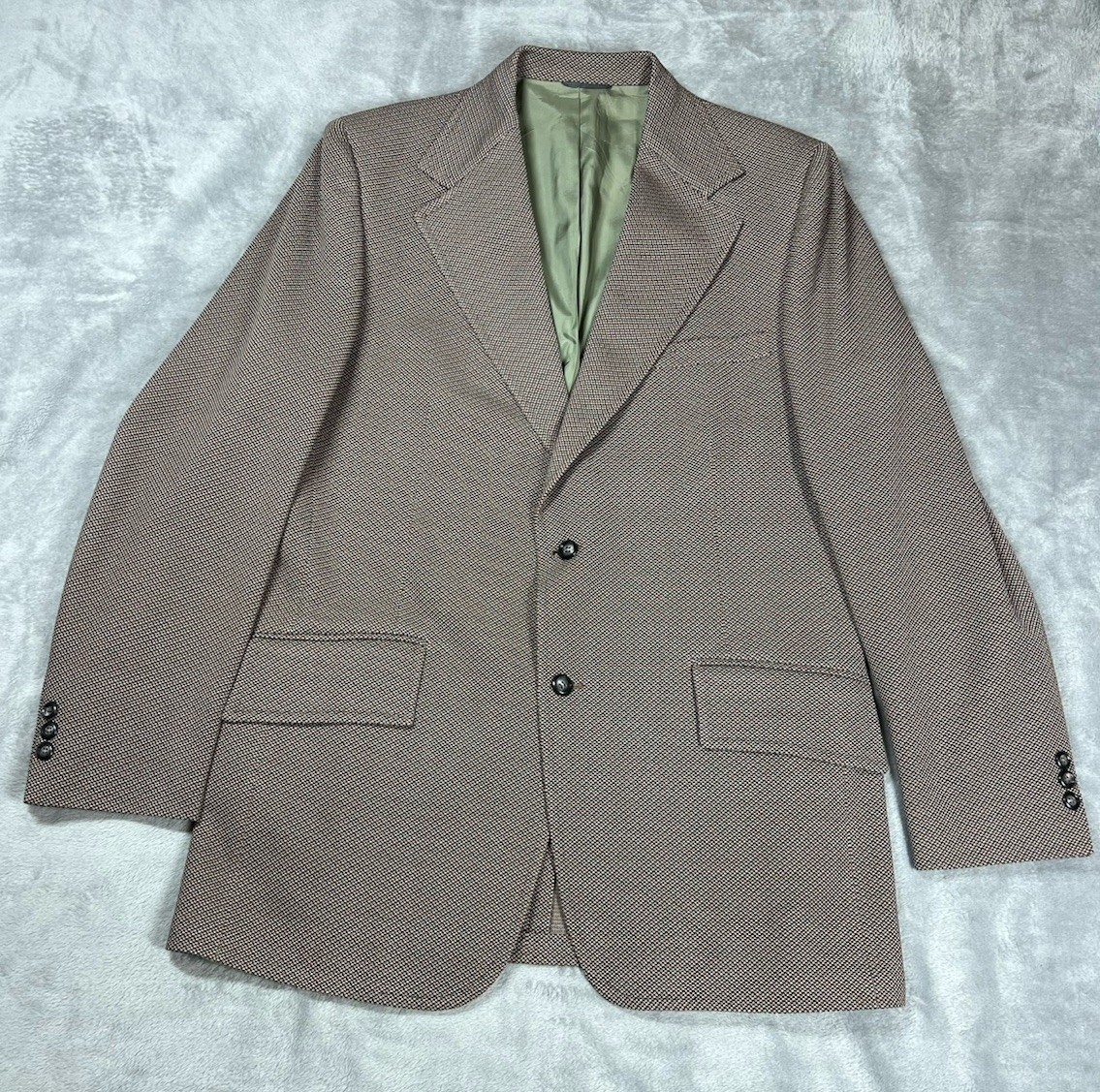 как выглядит VTG 70s Sears Kings Road Traveller Knit Suit 44L Brown Geometric Retro Disco Mod фото