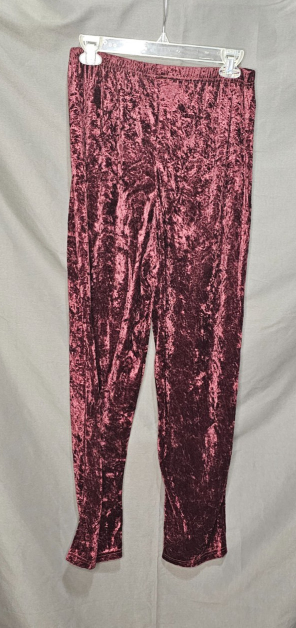 как выглядит Unbranded -Burgandy Crushed Velour Polyester Elastic Waist Pants - Medium фото