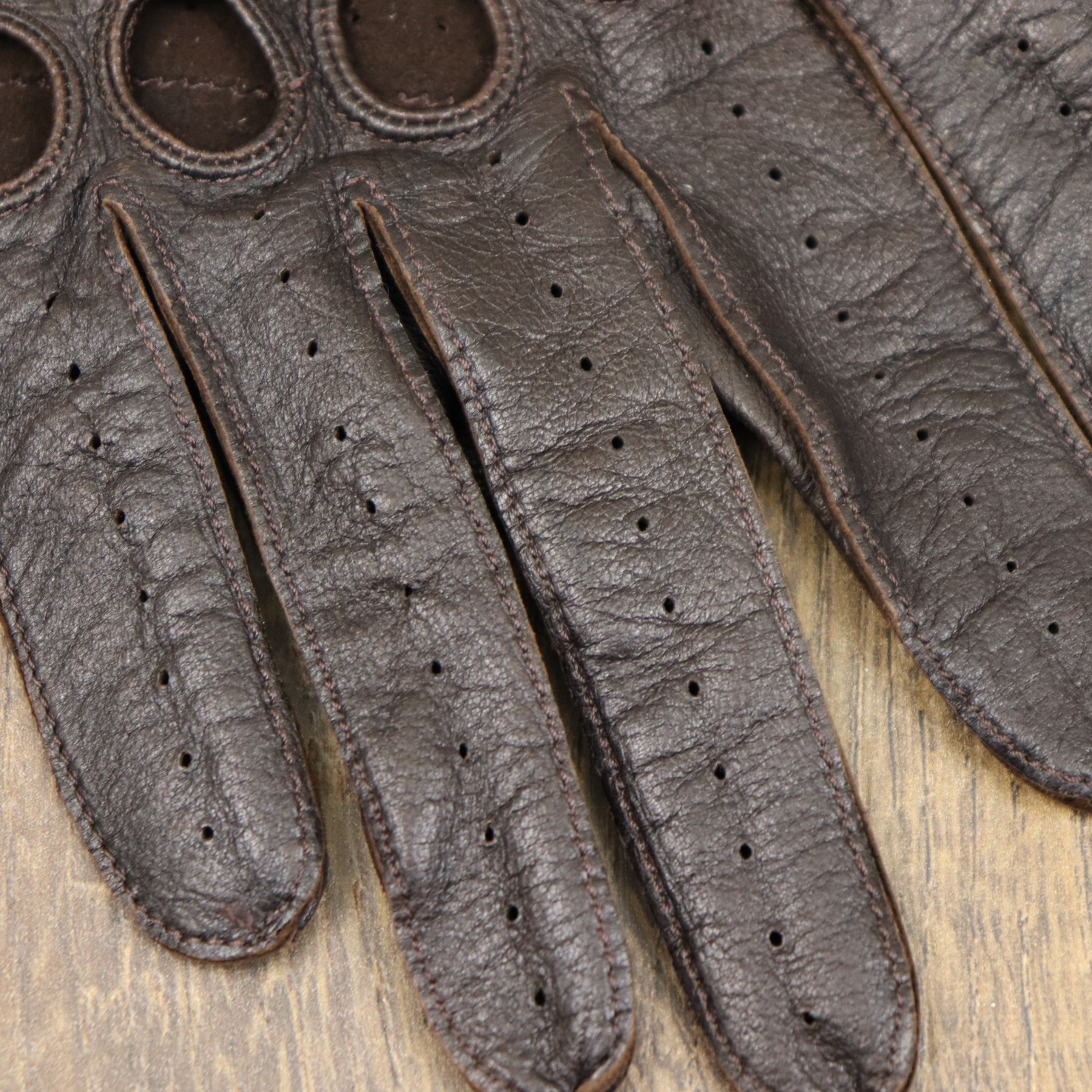 как выглядит Vintage COACH Sz M Brown Leather Driving Gloves Perforated Knuckle Holes фото