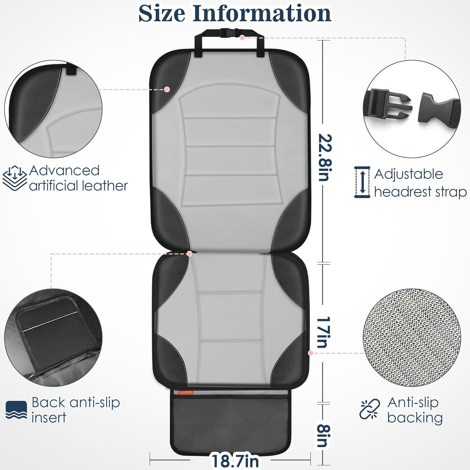 как выглядит Grey Car Seat Protector for Child  Waterproof, Non-Slip, 2 Pockets, Thick фото