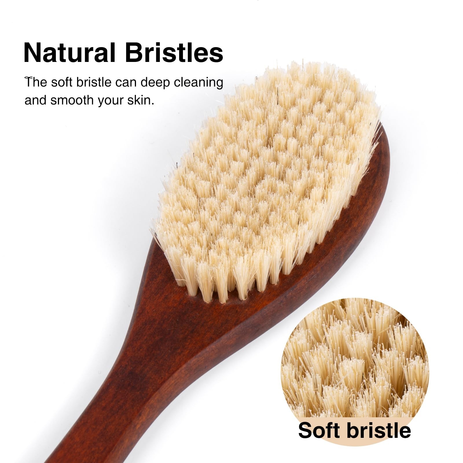 Wooden Bath Brush with Gentle Bristles Long Handle for Shower Back Scrubber New