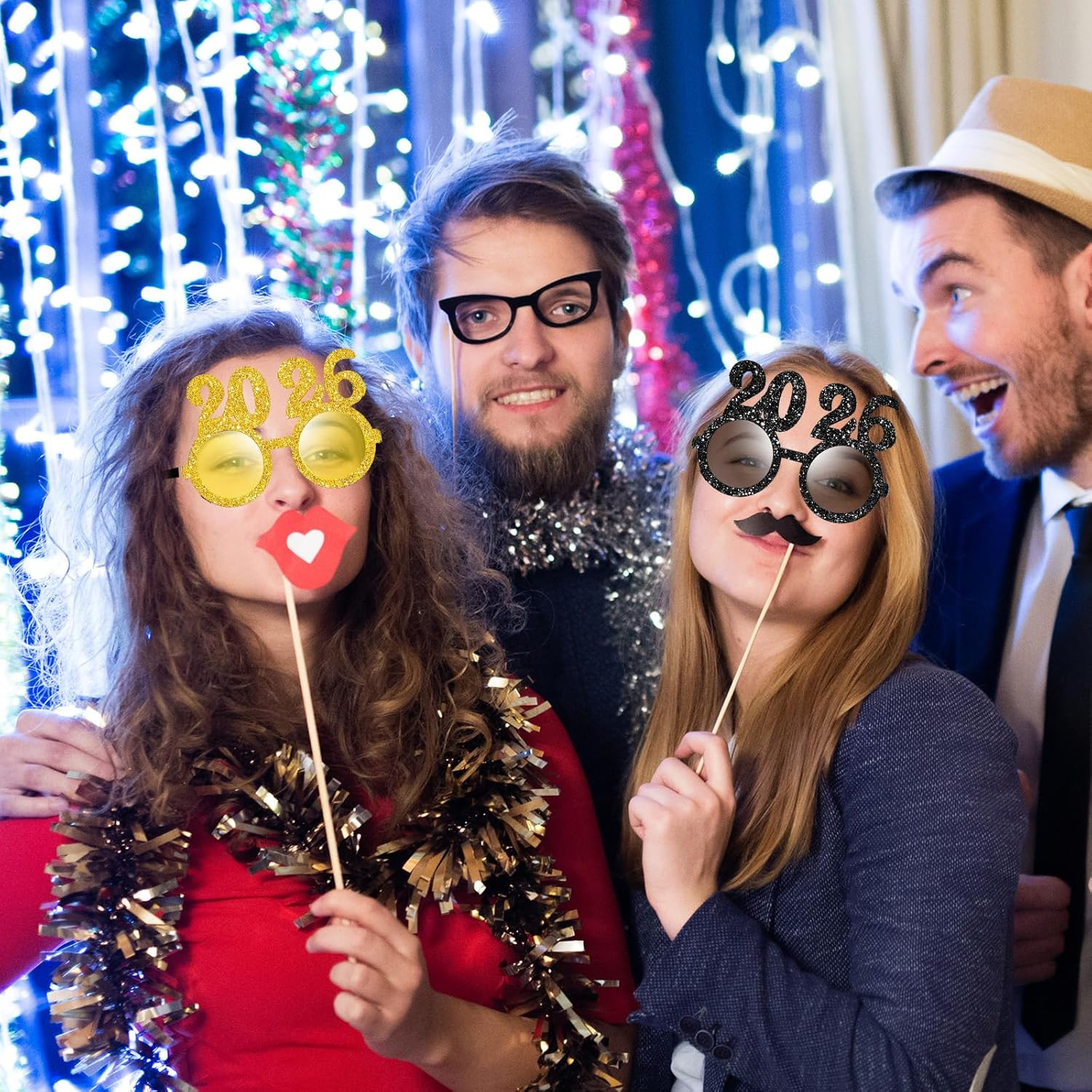 как выглядит 2026 New Year Glitter Glasses  Funny Number Sunglasses, Party Photo Props фото