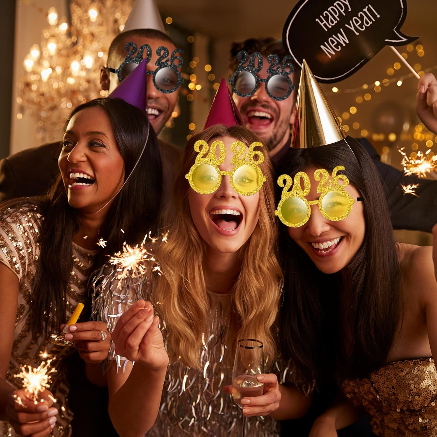 2026 New Year Glitter Glasses Funny Number Sunglasses, Party Photo Props
