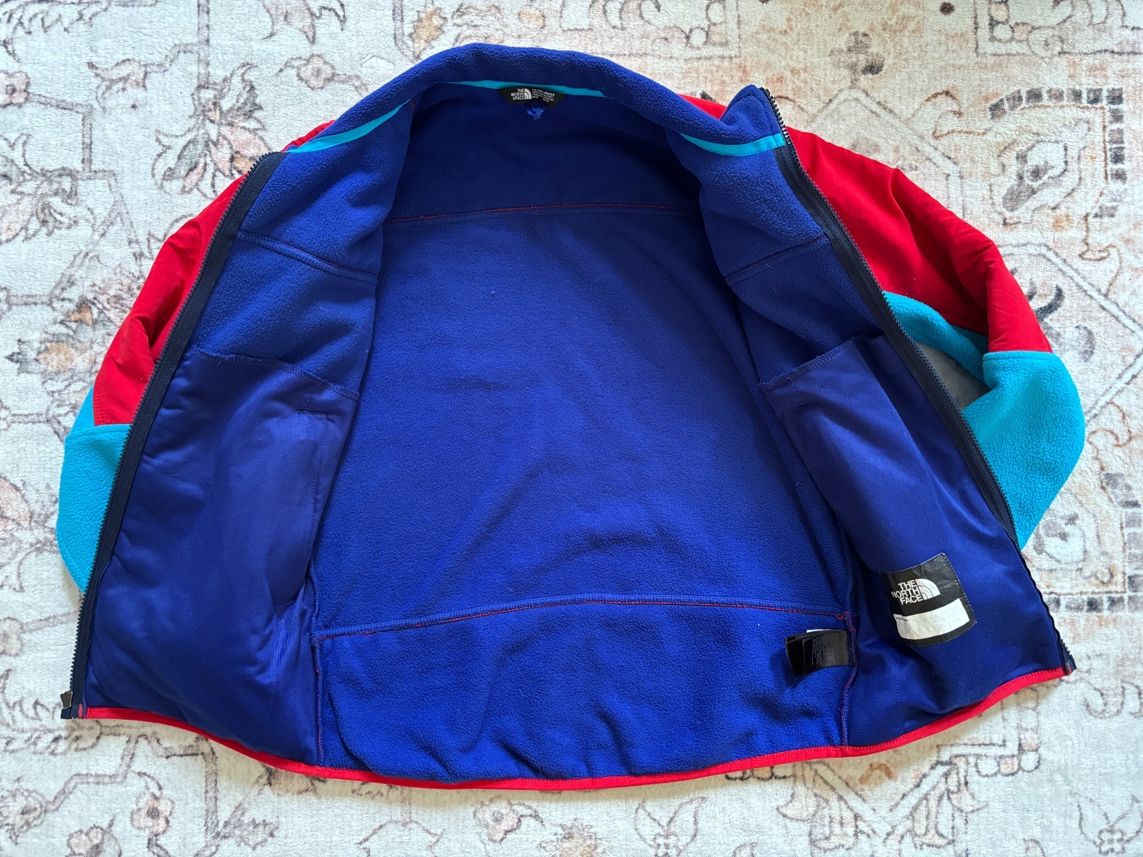 The North Face Retro Denali Fleece Jacket Youth Colorblock Red Blue Medium 10-12