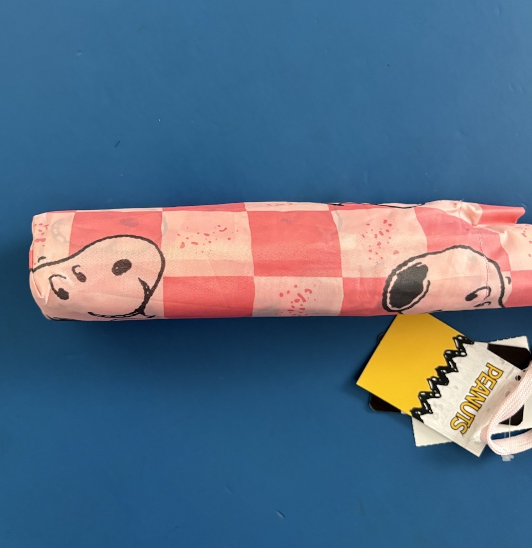 как выглядит Peanuts Snoopy Pink Checkered Auto Open/Close Umbrella with Sleeve NWT фото