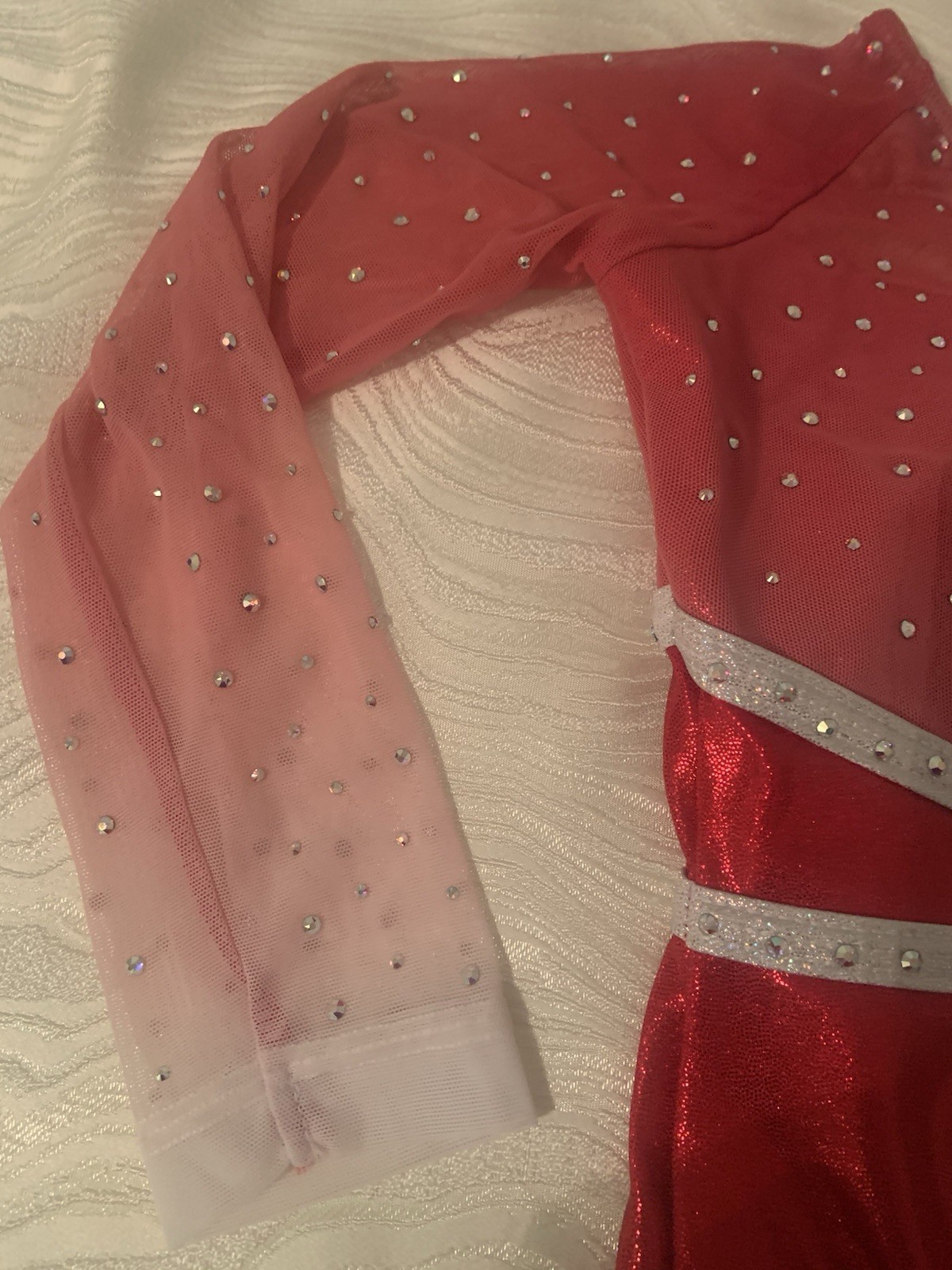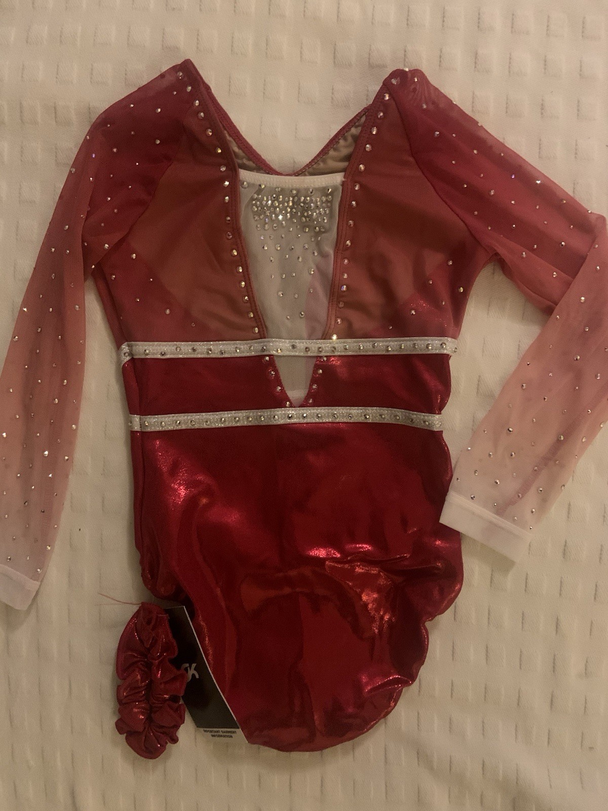 как выглядит New GK ELITE Leotard GYMNASTICS Red RHINESTONE Bling Competition AXS фото