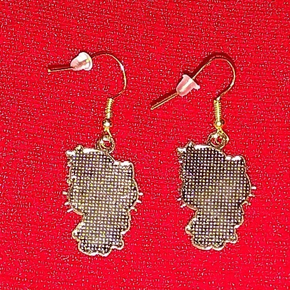 Hello Kitty Holiday Christmas Holding a Bell Gold Plated Dangle Drop Earrings