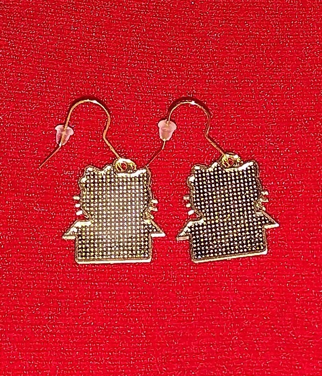 Hello Kitty Holiday Christmas Gift Box Present Gold Plated Dangle Drop Earrings