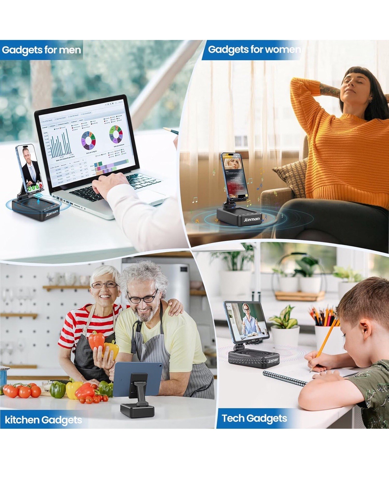 Cell Phone Stand with Wireless Bluetooth Speaker and Anti-Slip Base HD Surround