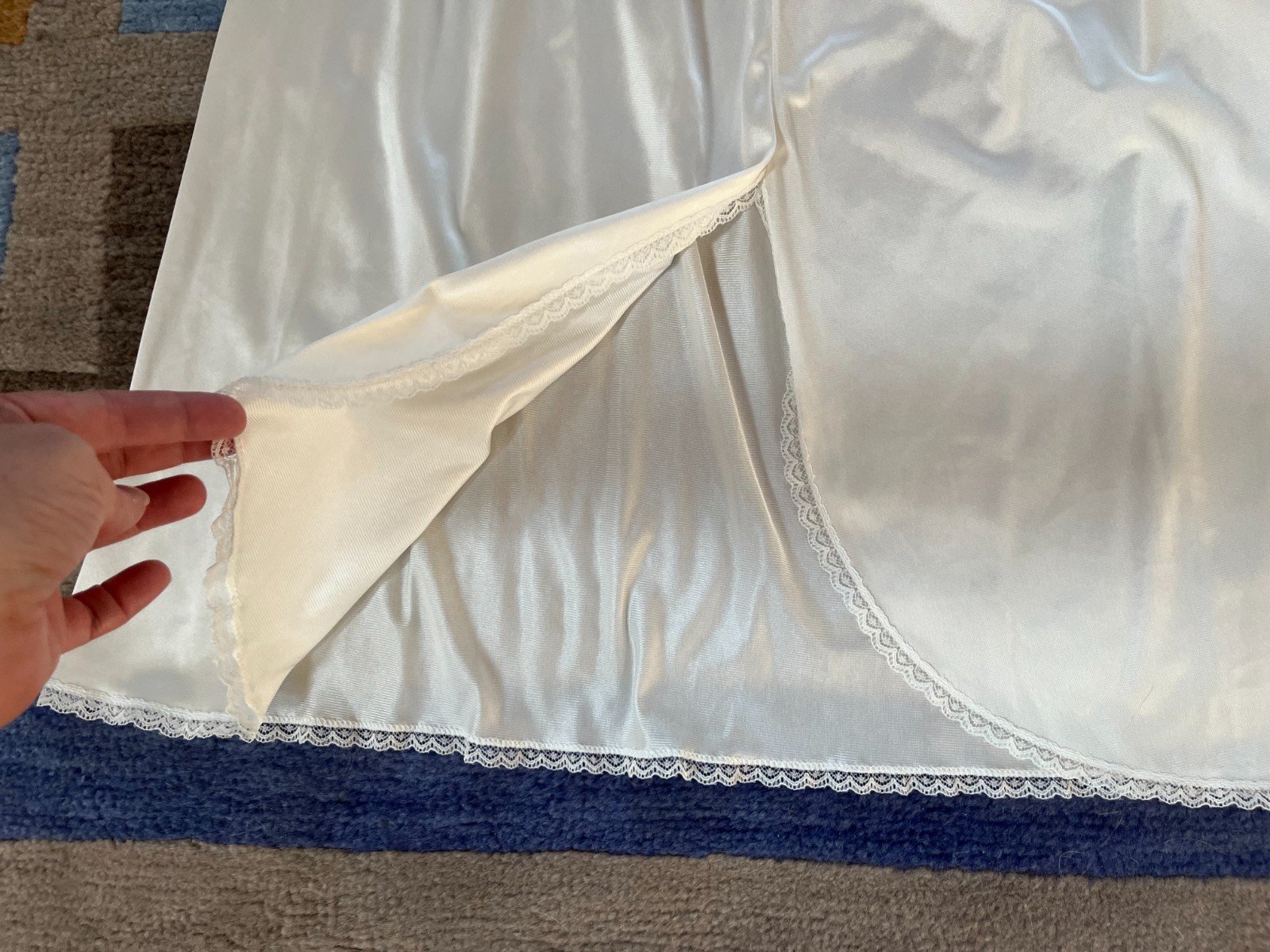 как выглядит Vassarette 24" Nylon Half Slip Lingerie Knee Length Ivory Slit Women