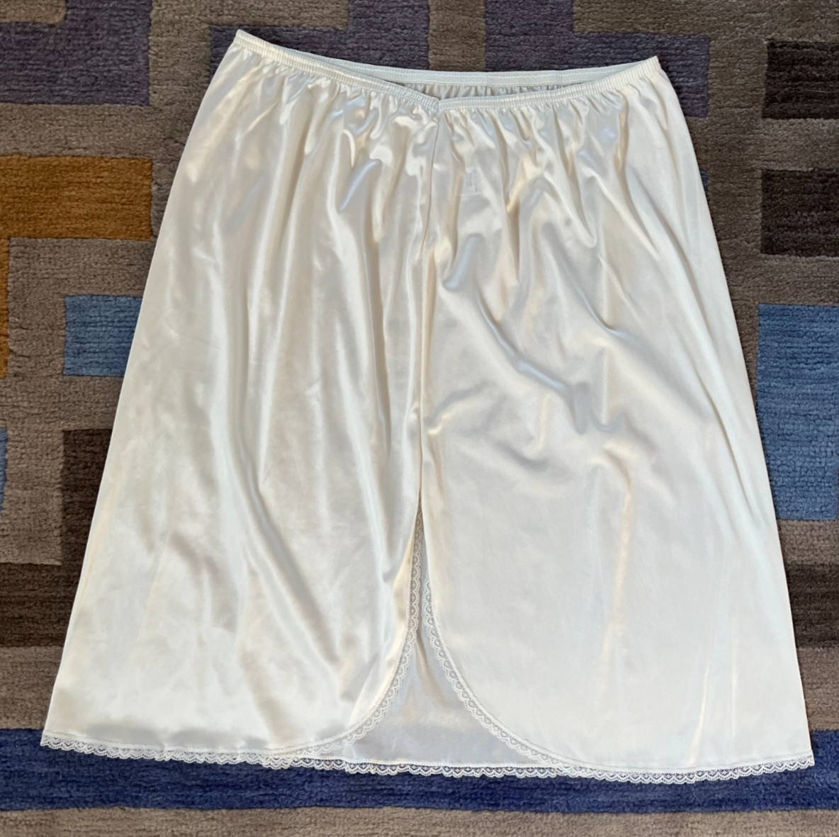 Vassarette 24 Nylon Half Slip Lingerie Knee Length Ivory Slit Women's Size 2XL