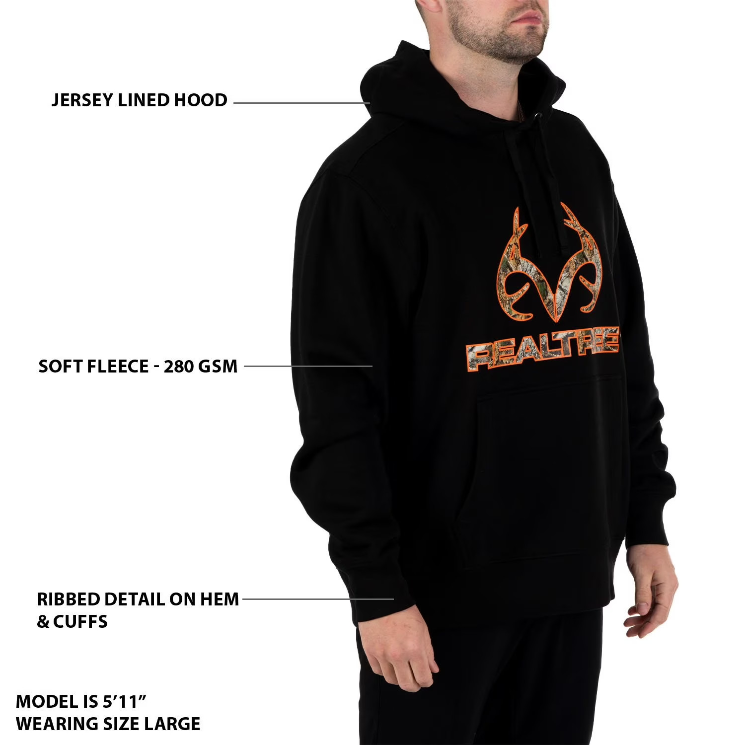 как выглядит REALTREE Black Camo Logo HUNTING HOODIE SWEATSHIRT MENS XL NEW NWT фото