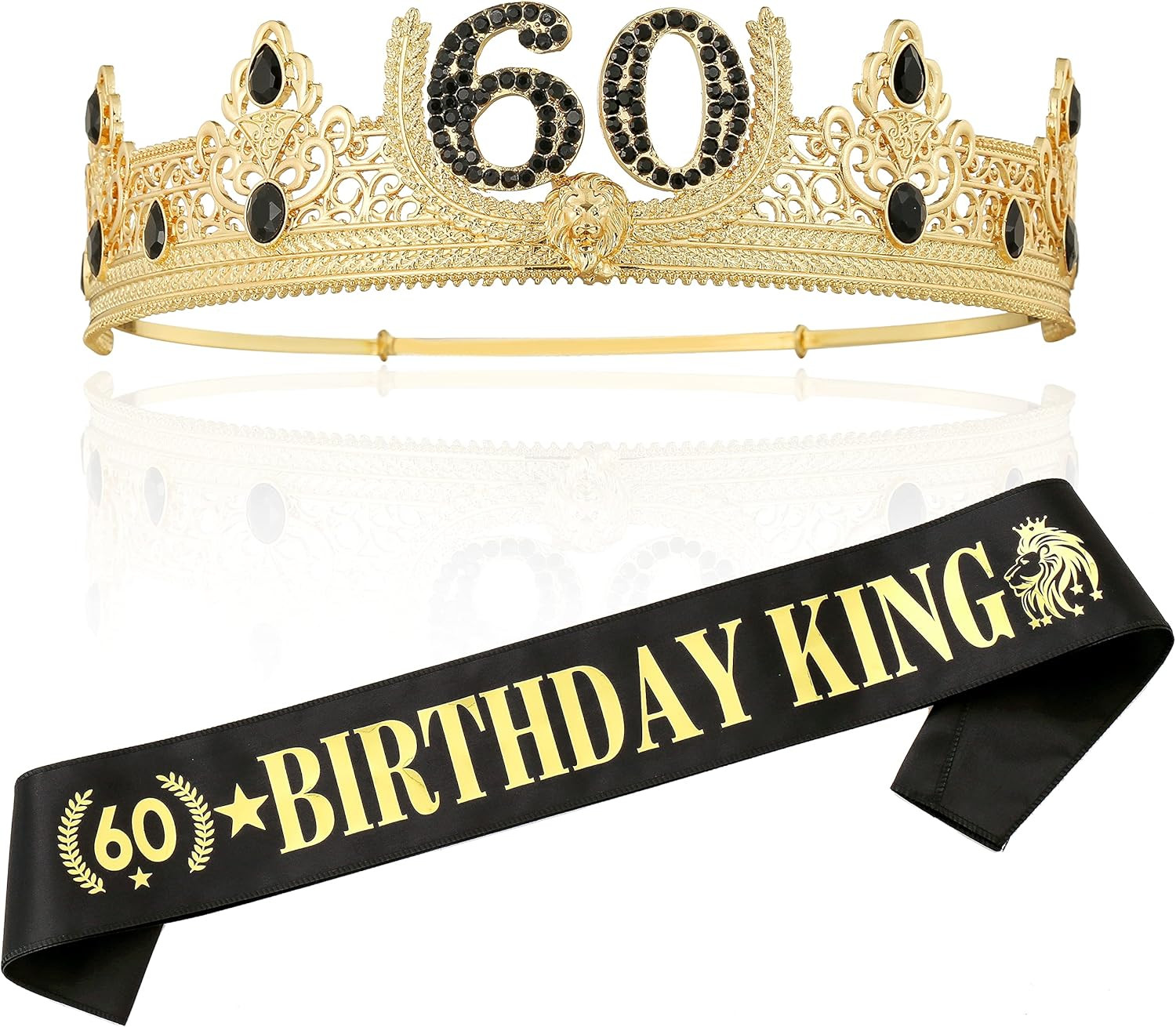 60TH Birthday King Crown and Birthday King Sash,60Th Birthday Gifts for Men. Bir