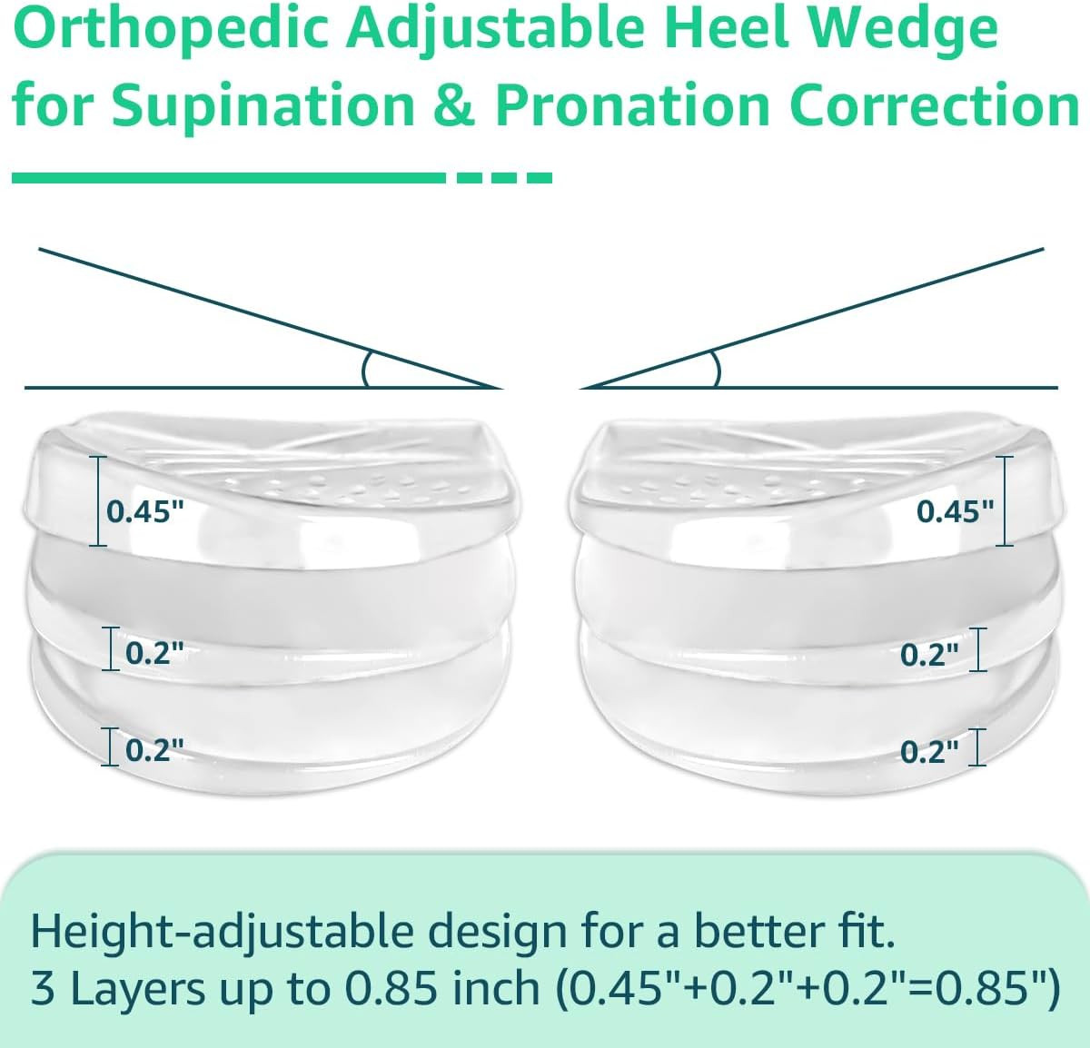 3 Layers Adjustable Heel Wedge Inserts for Supination Pronation Correction, Ad
