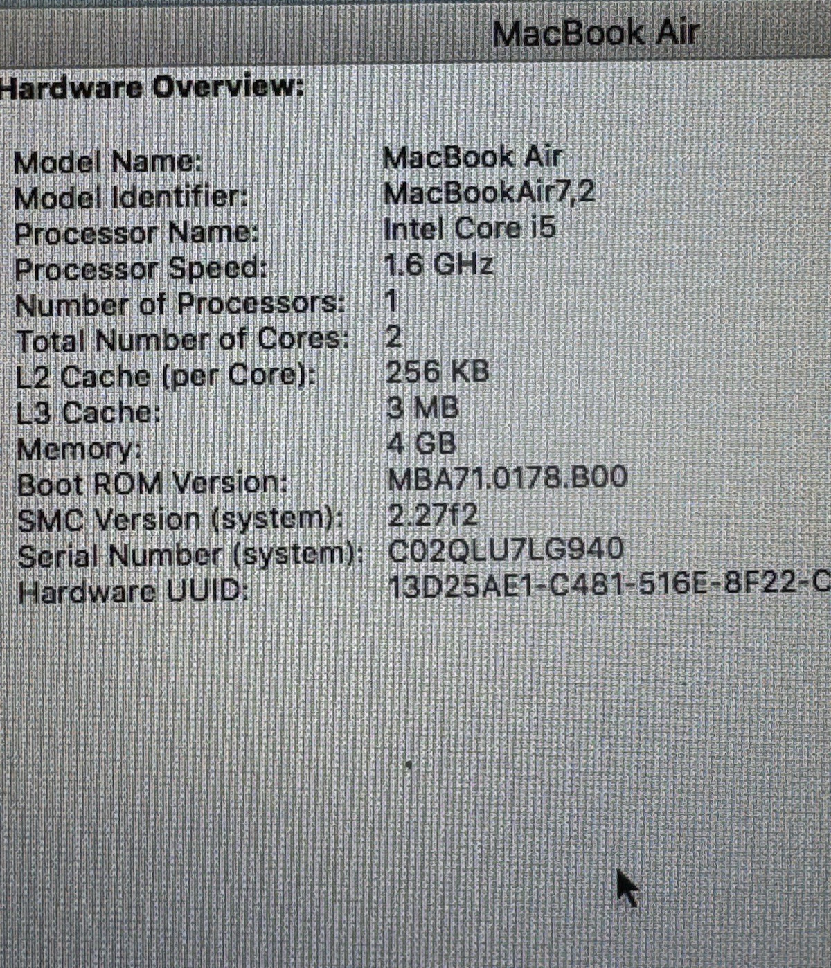 Apple MacBook Air Laptop - 1.6 GHz I5 4GB 256K 13.3 -7,2 WORKS FINE