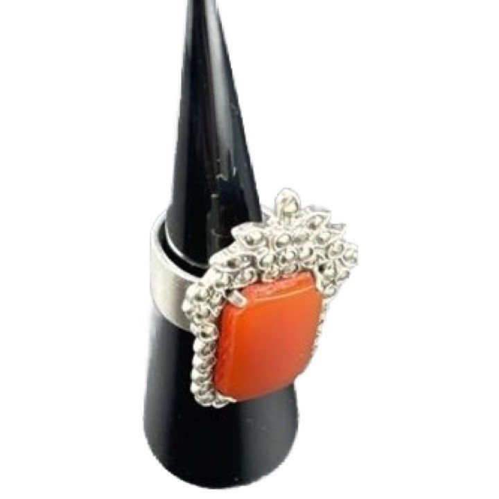как выглядит Sterling Silver Marcasite Ring 5.25 Carnelian Red фото