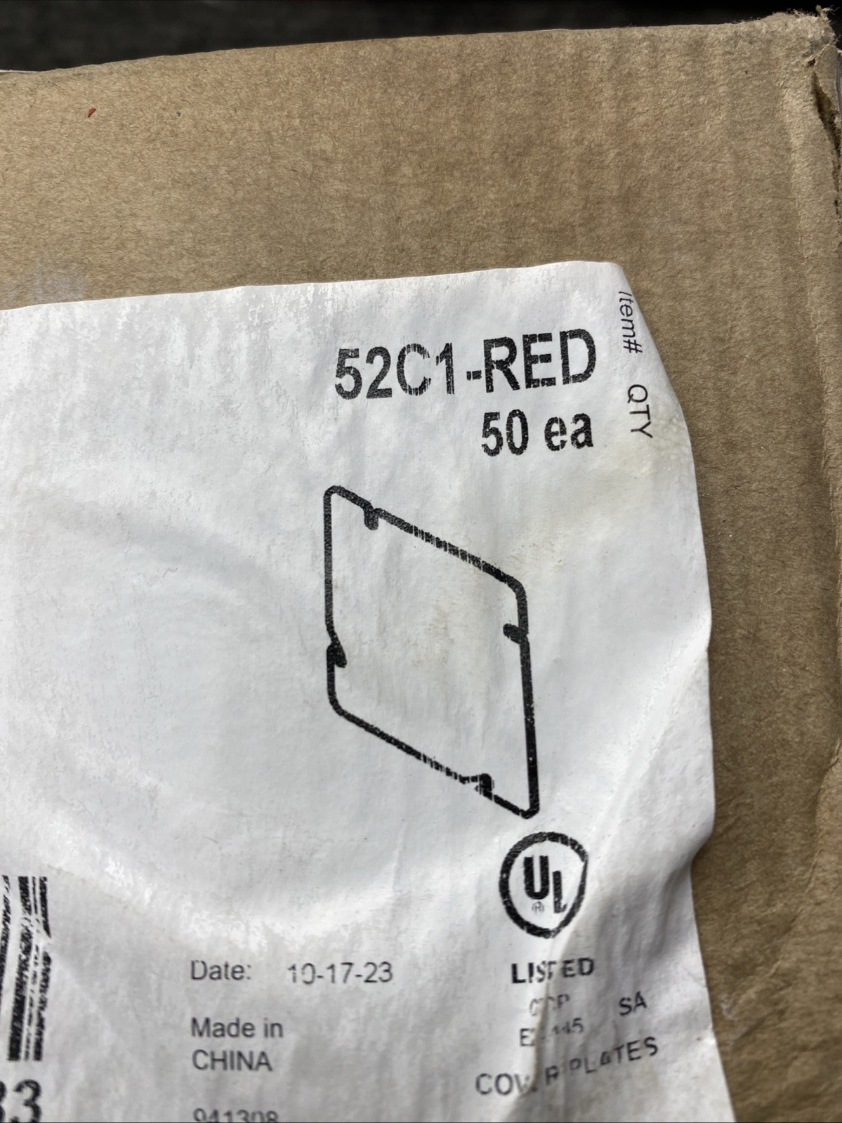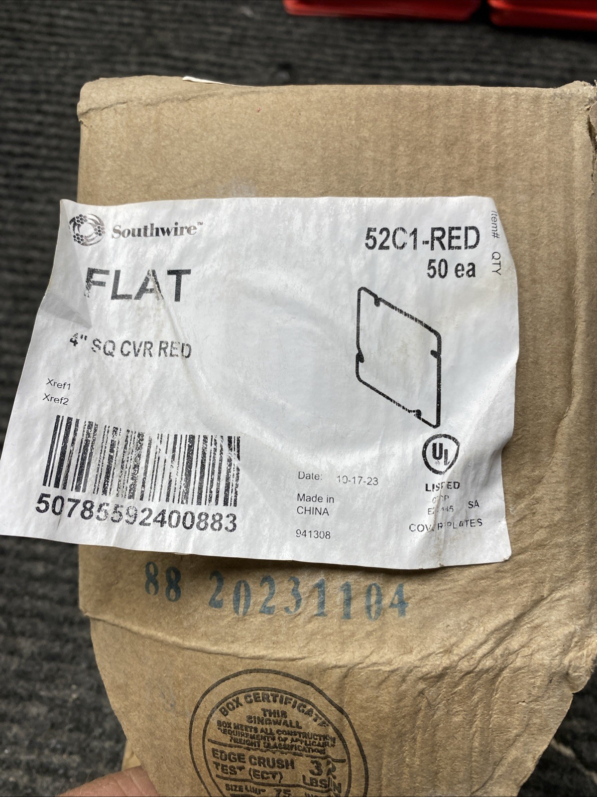 Box Of 50 Southwire 52C1-RED 4SQ FLAT BLANK COVER RED