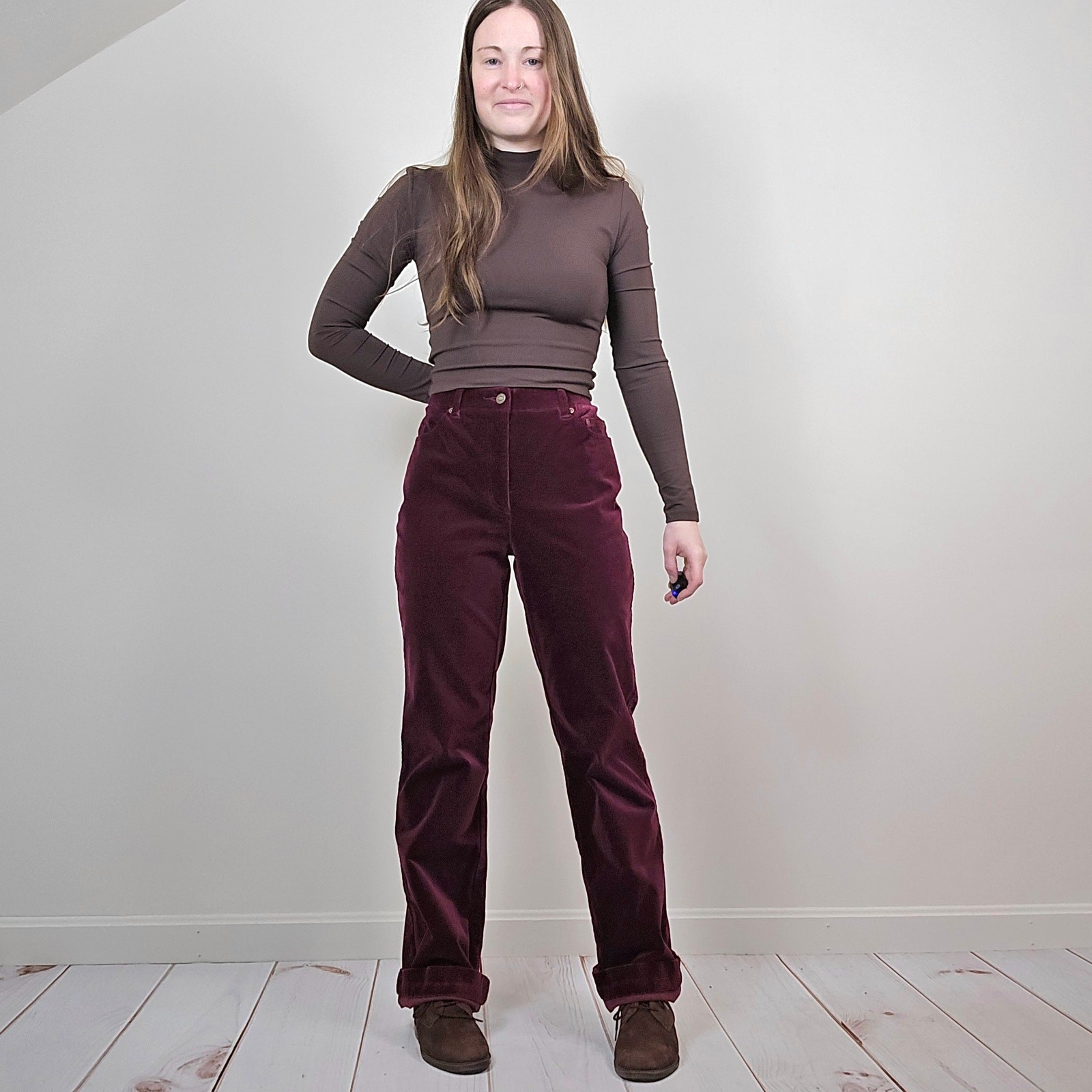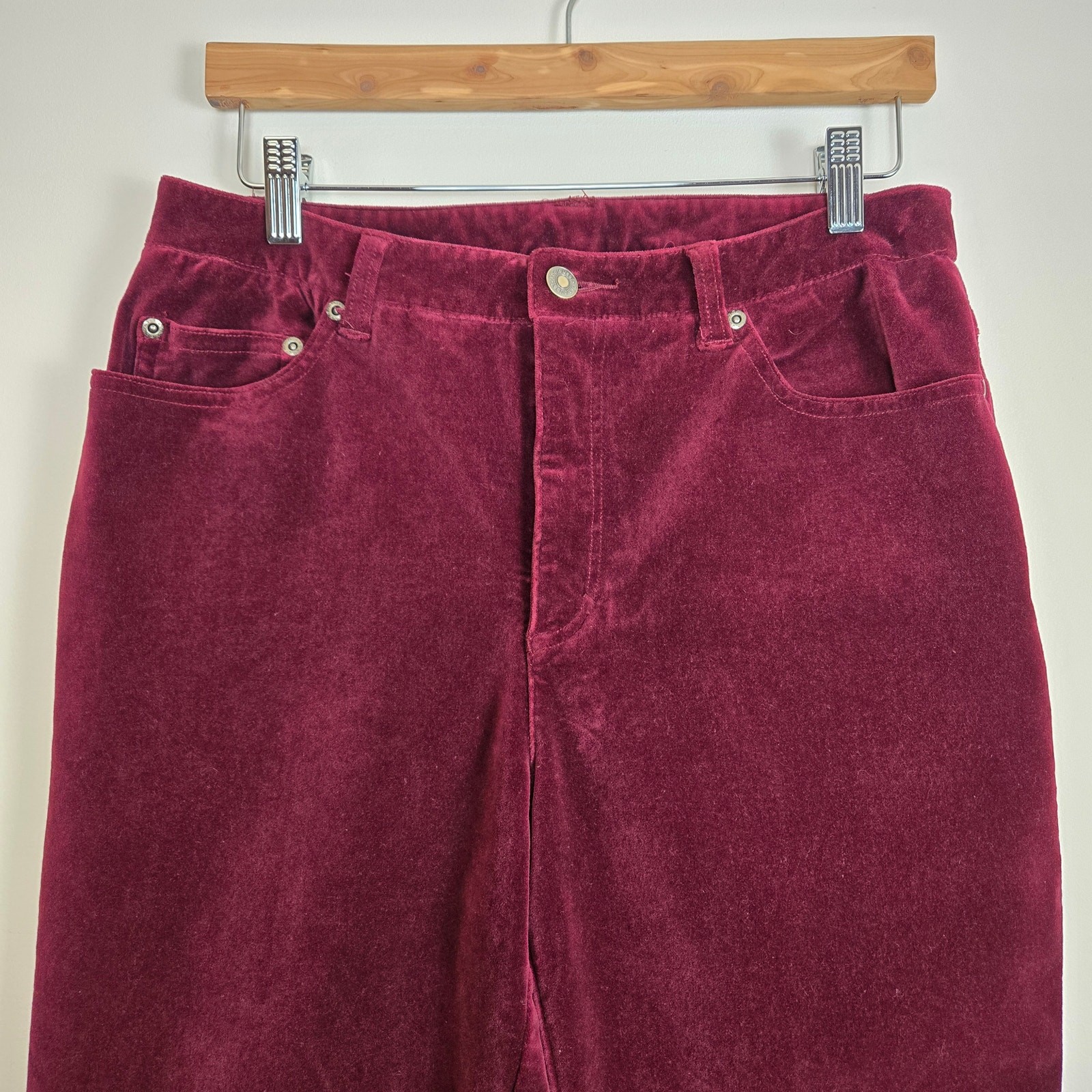 как выглядит Vintage 90s Y2K Maroon Velvet Mid Rise Straight Leg Pants Womens 30" Tall фото