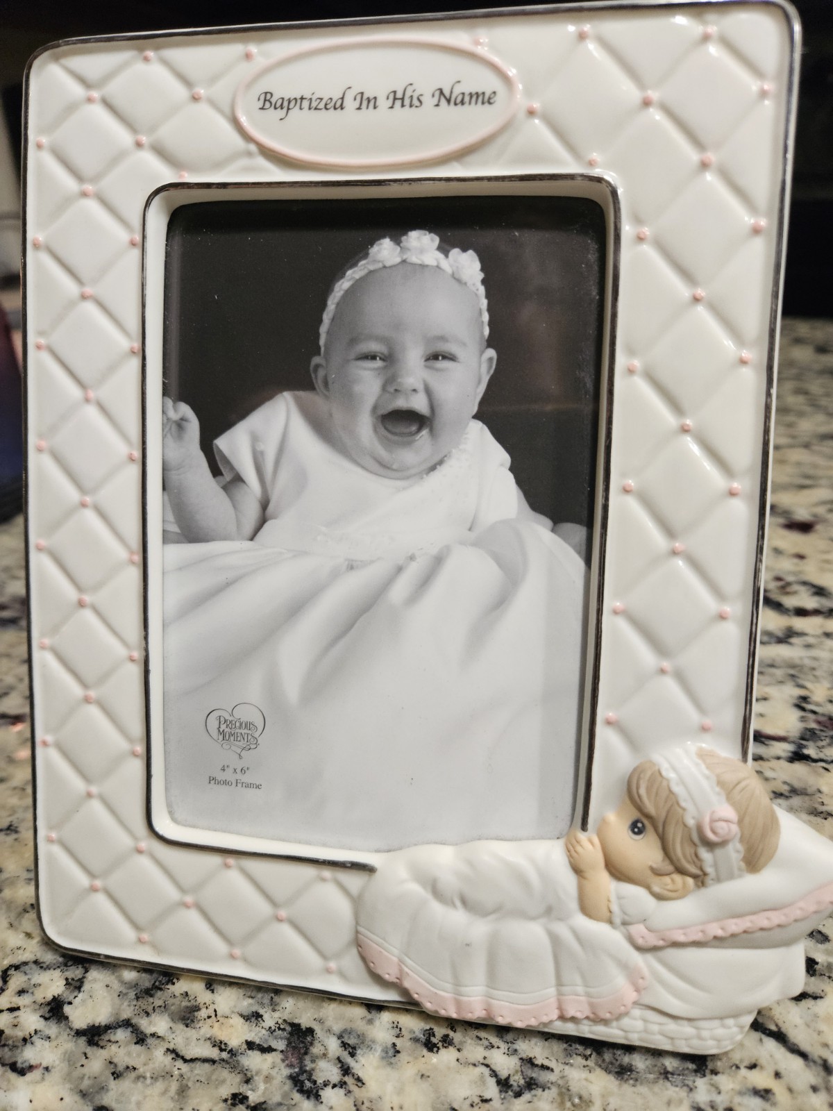 Precious Moments Baptism Picture Frame Quilted Pink Baby Girl Dedication Gift