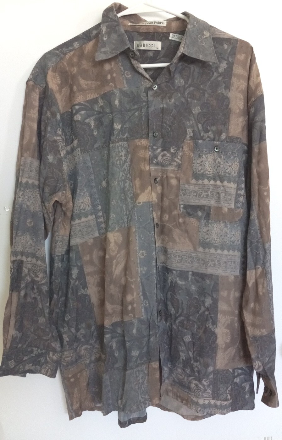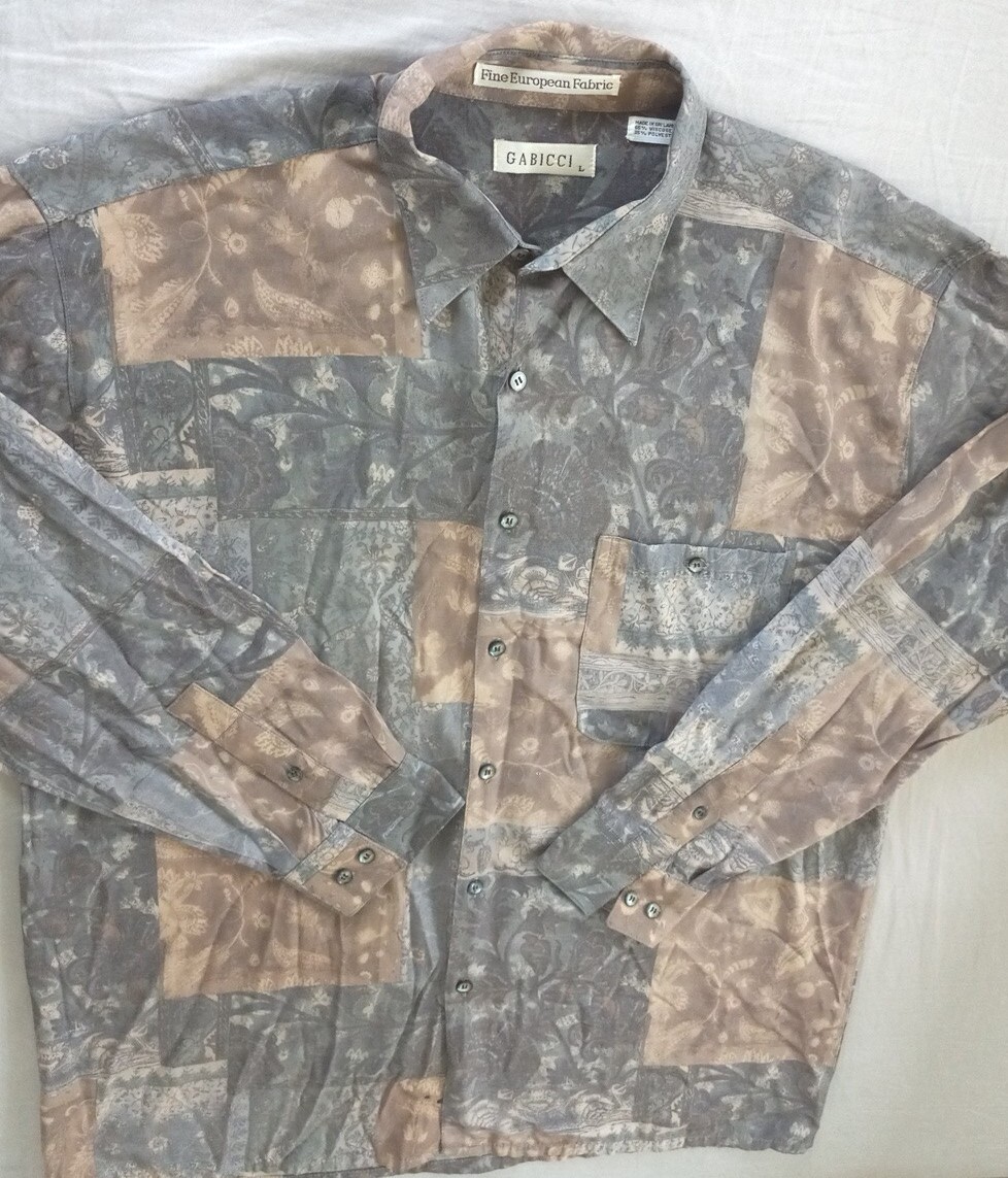 как выглядит Gabicci Mens Long-sleeved Shirt Size Large Brown Floral Button Up Vintage фото