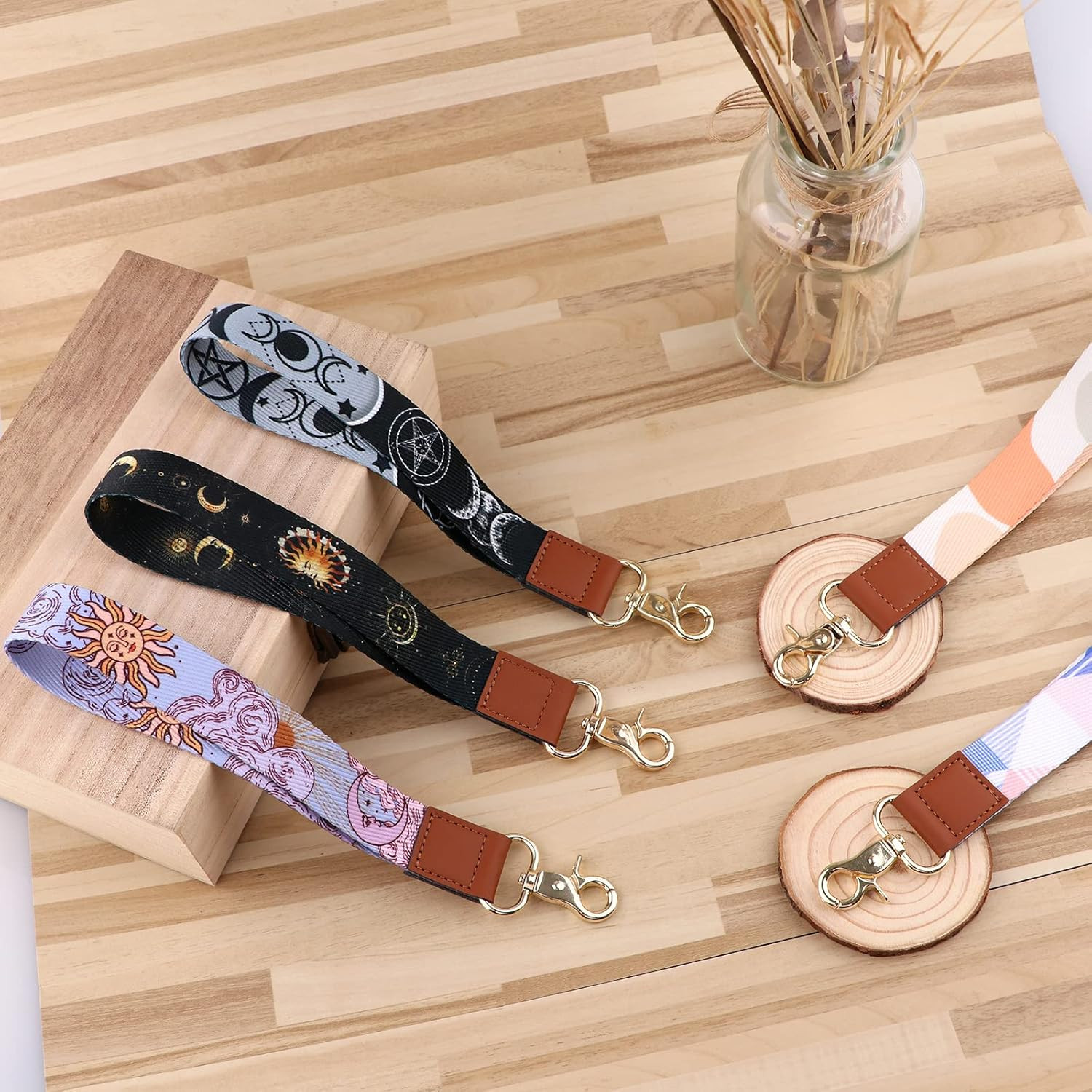 Cute Purple Wrist Lanyard Keychain, Moon Sun Design, Key Holder for Women Teen