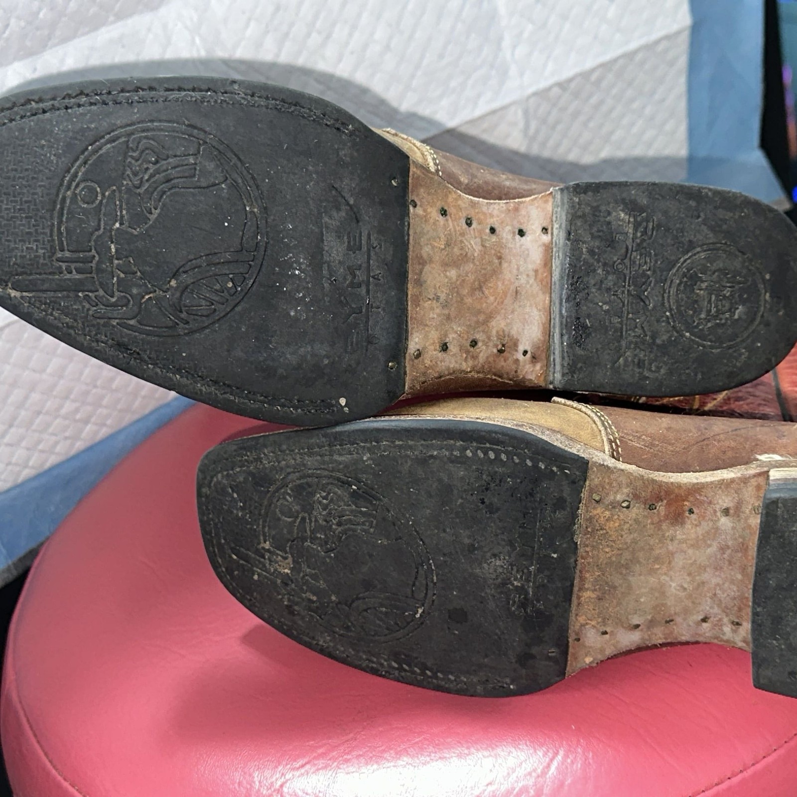 как выглядит Vintage Kids Red and Brown Western Cowboy Boots with Wing Stitching фото
