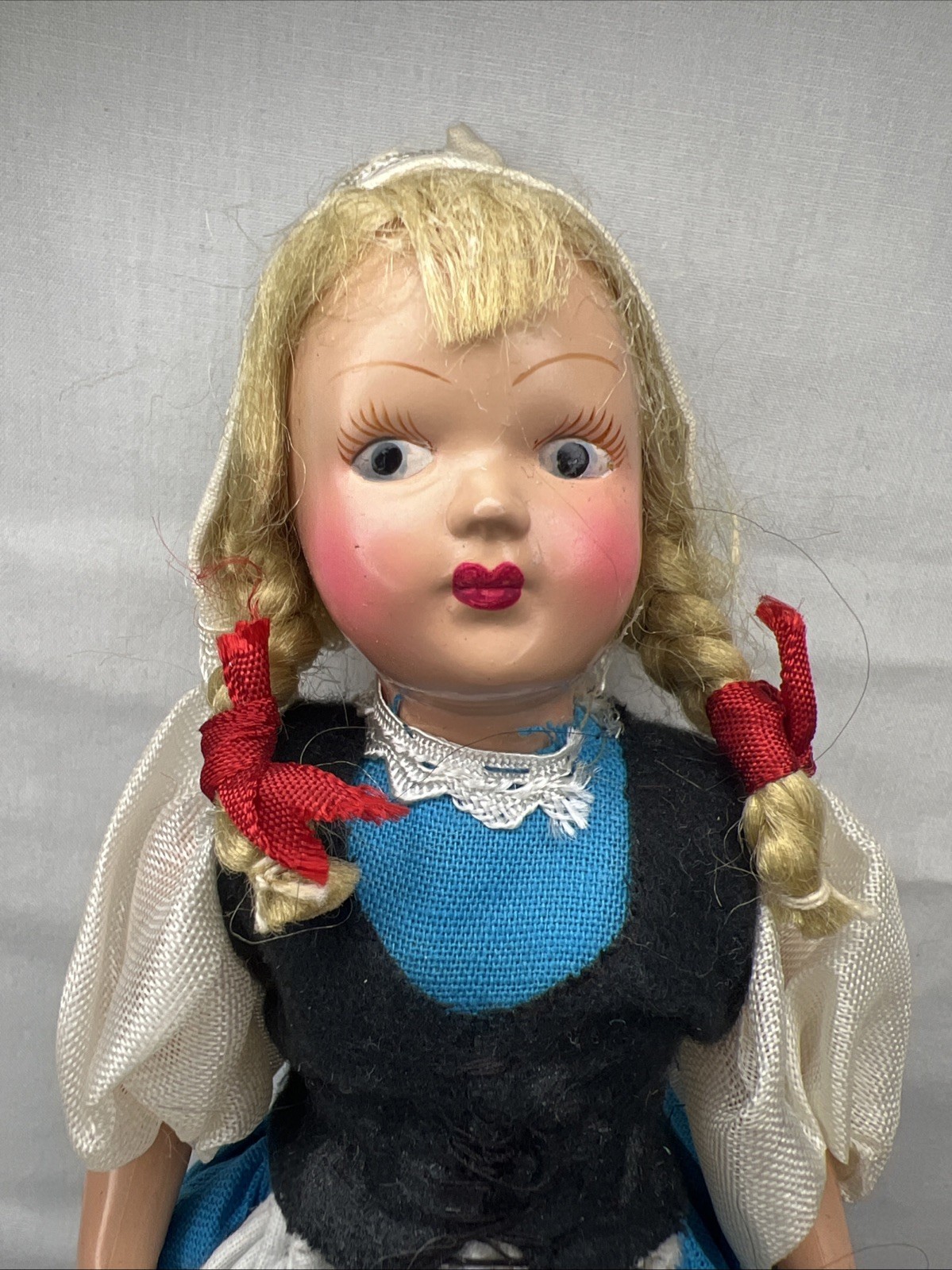 как выглядит Vtg Celluloid Hand Painted Face German Style Clothing Doll 8 фото