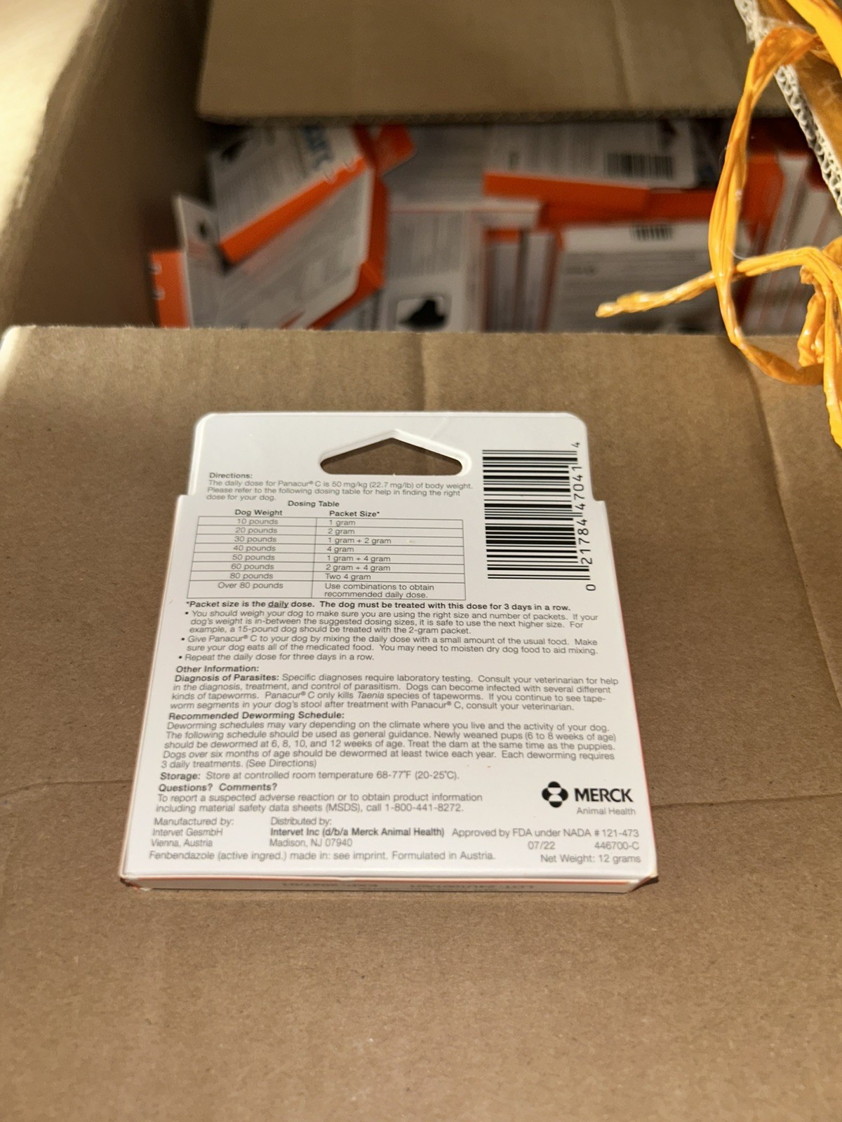 Panacur C Dog Dewormer 4g 40 lb 1 Pack Fenbendazole Canine Worm Treatment