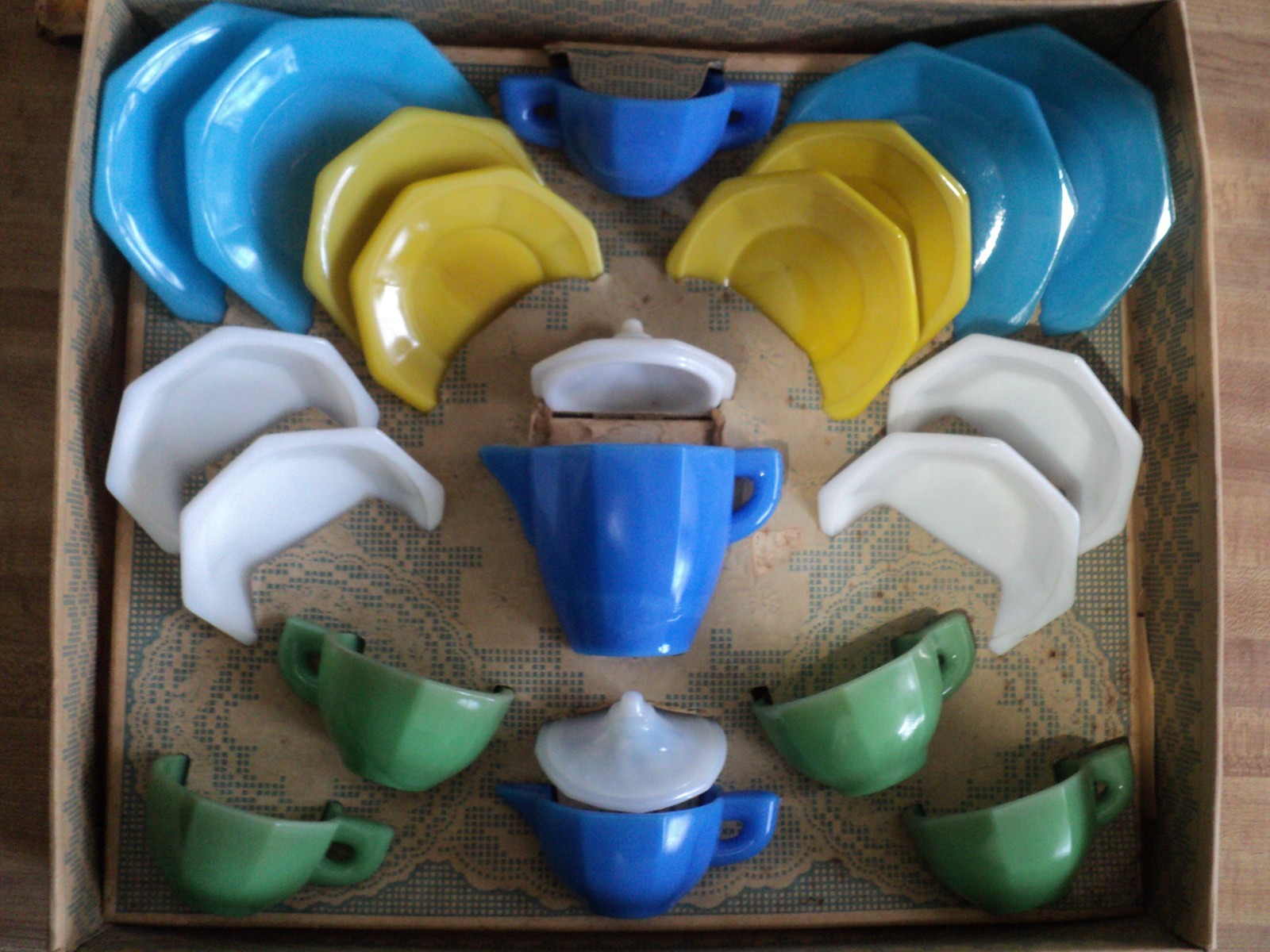 как выглядит Vintage Akro Agate Little American Maid Tea Set 21 pc. No. 335 фото