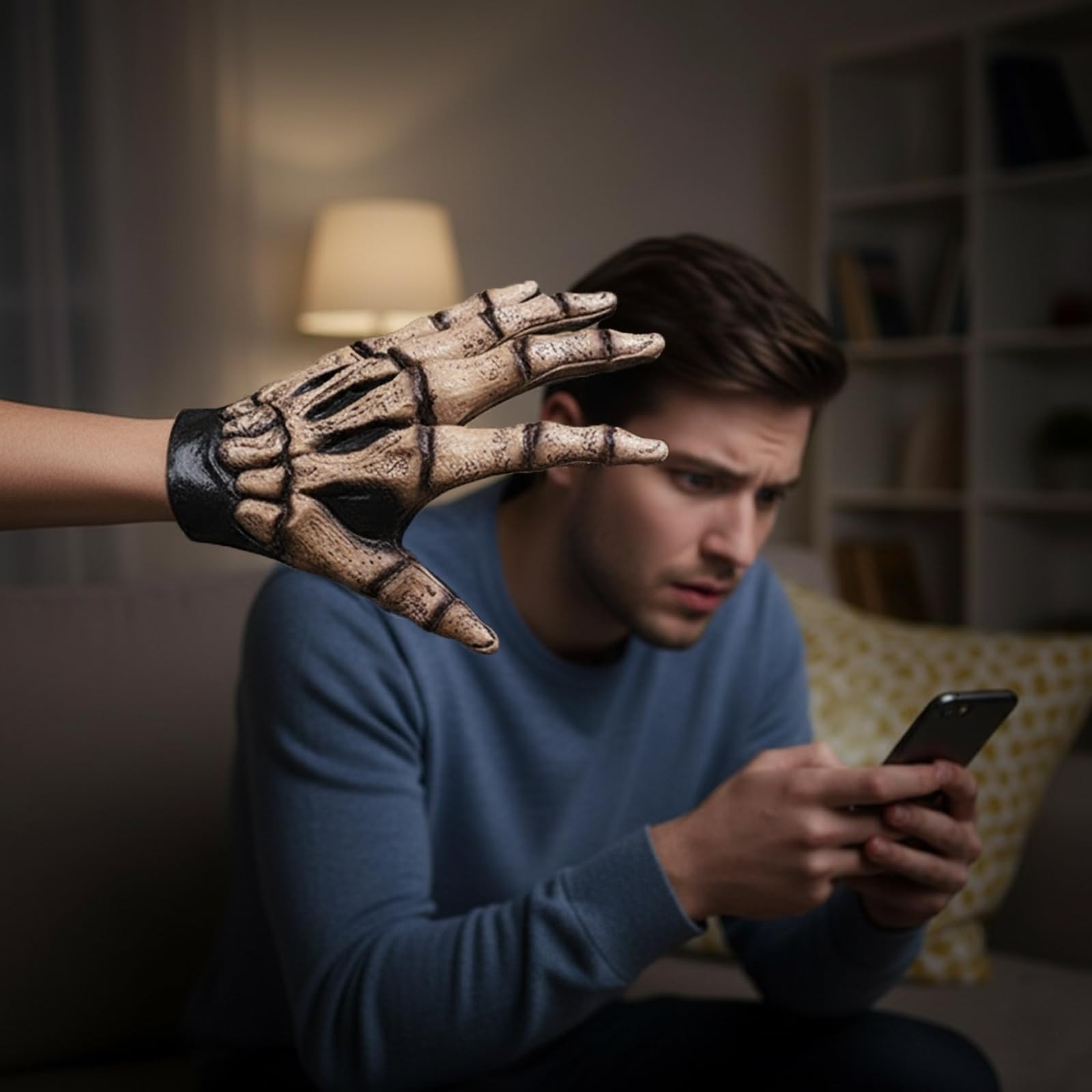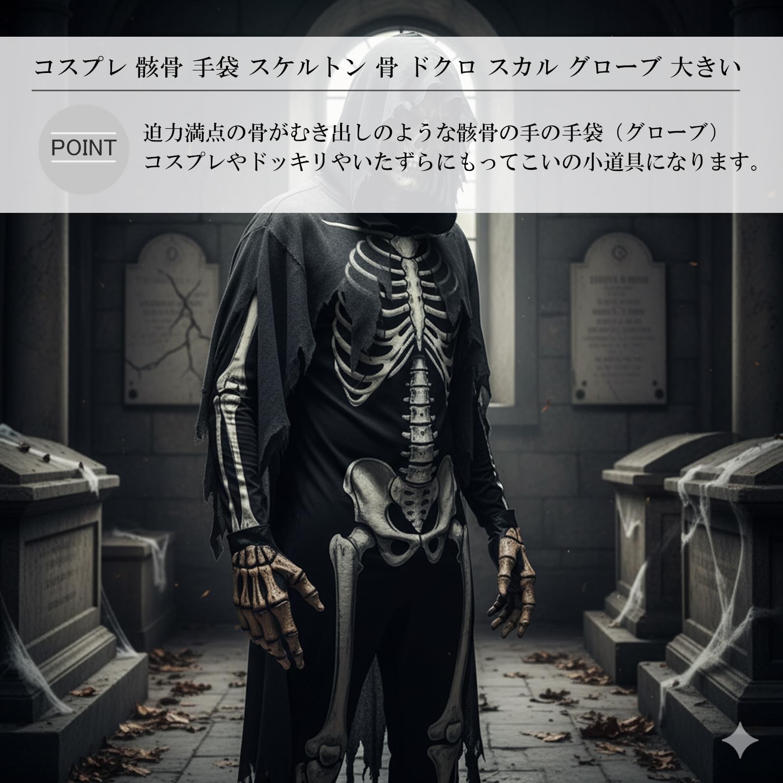 • Silver Style Cosplay Skeleton Gloves, Realistic Skeleton Gloves For Hallowe