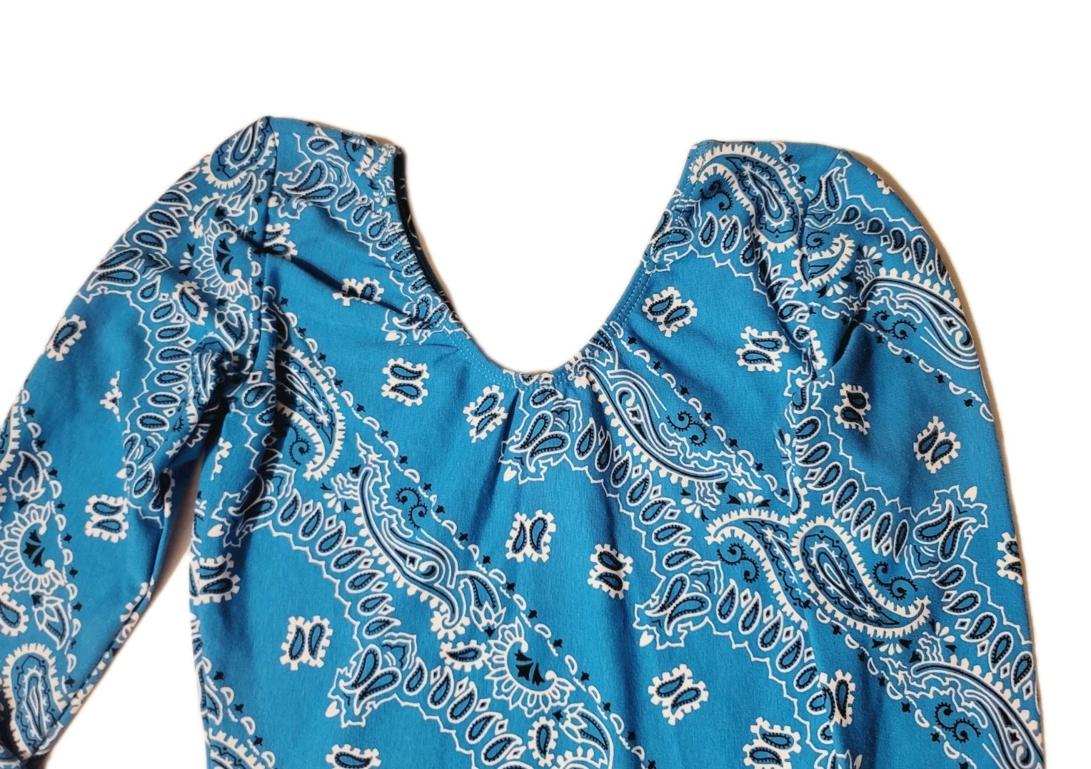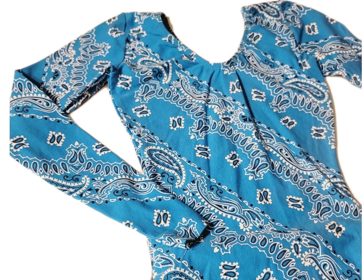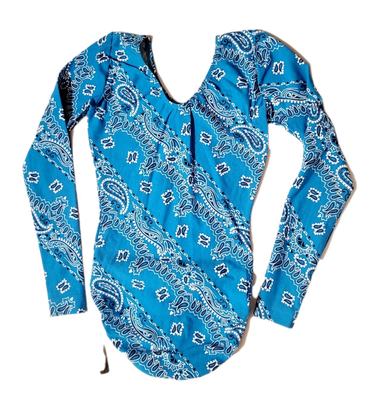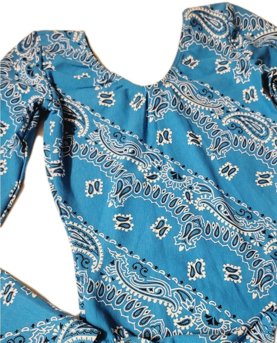 GK Elite VTG 90s Blue Bandana Paisley Cotton Long Sleeve Vneck Leotard Size AS