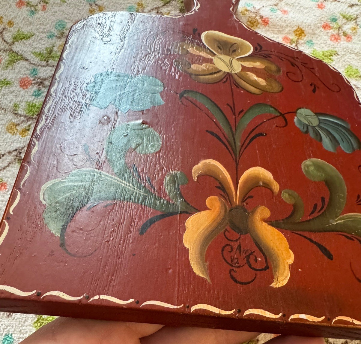 Norwegian Hand Painted Floral Rosemaling Cutting Board Scandinavian Decor Signed