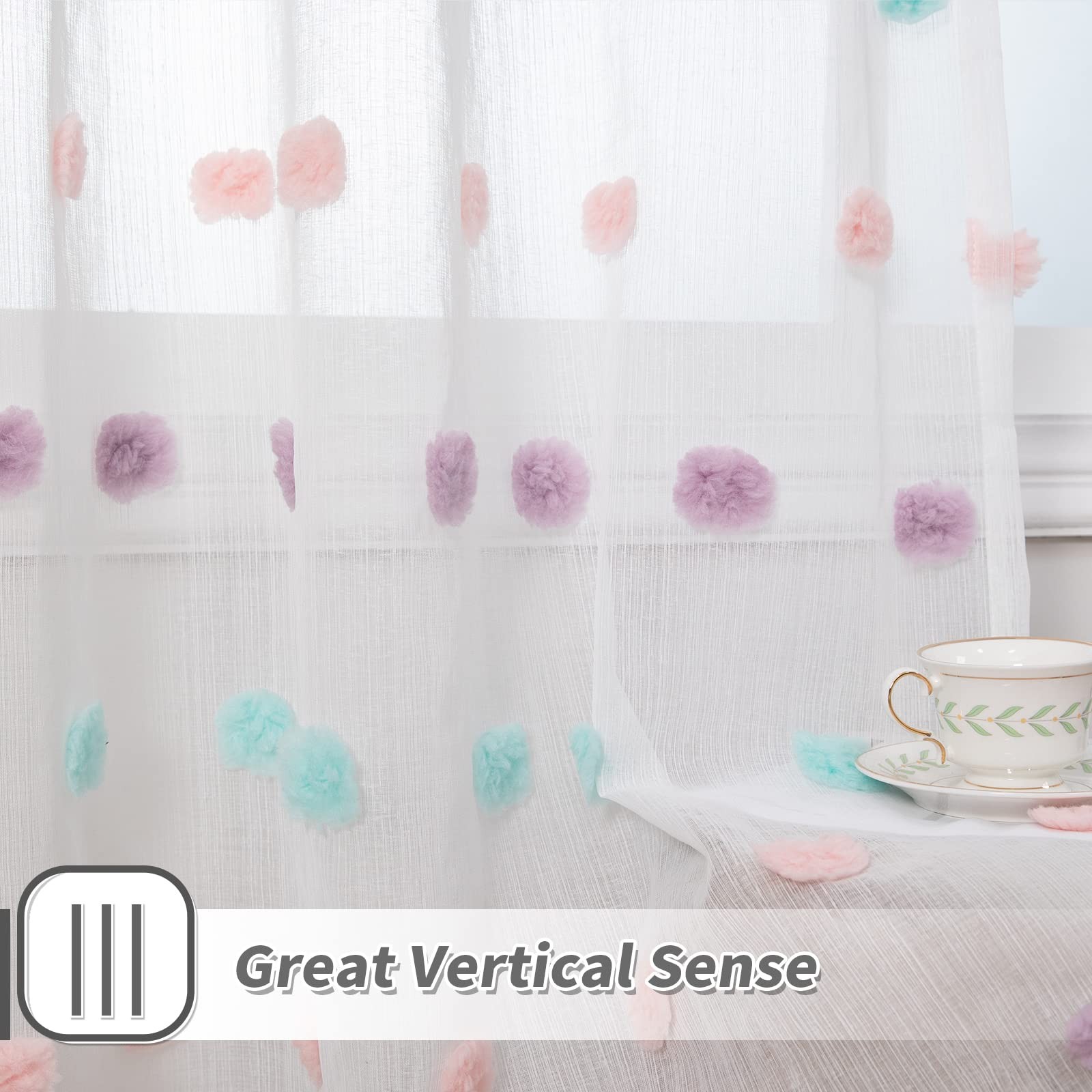 MYSKY HOME Rainbow Pom Pom White Sheer Curtains 37x54 In. Long - 54 Inch