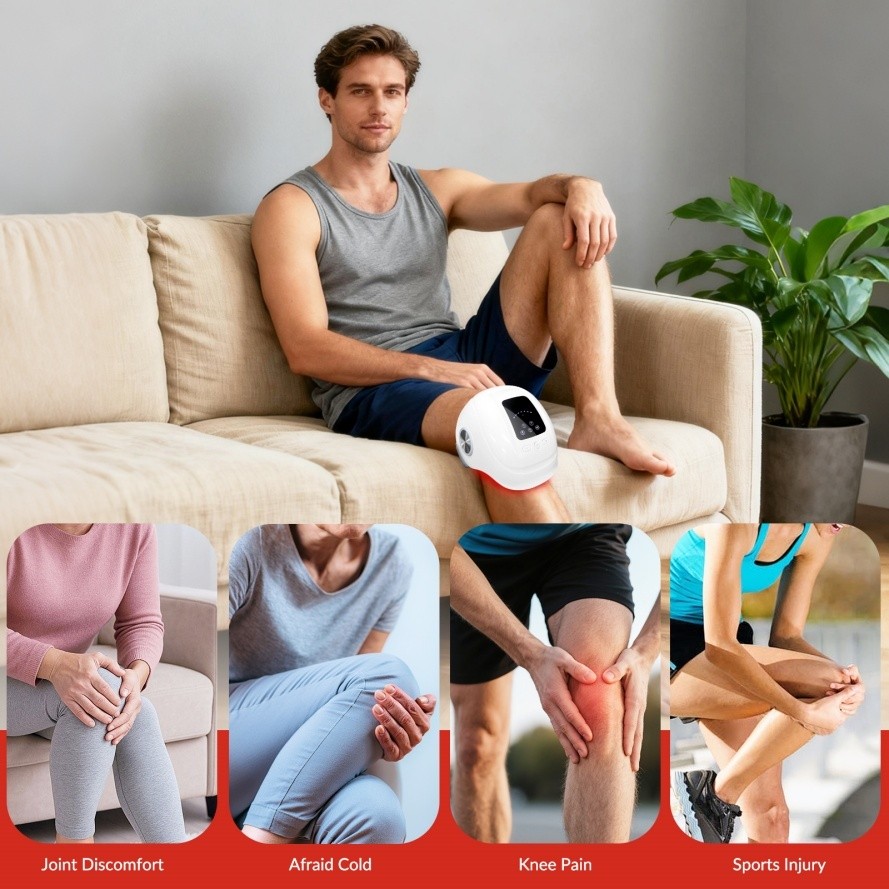 Heat Vibration Massage Wireless Knee Massager LED Screen Red Light Therapy