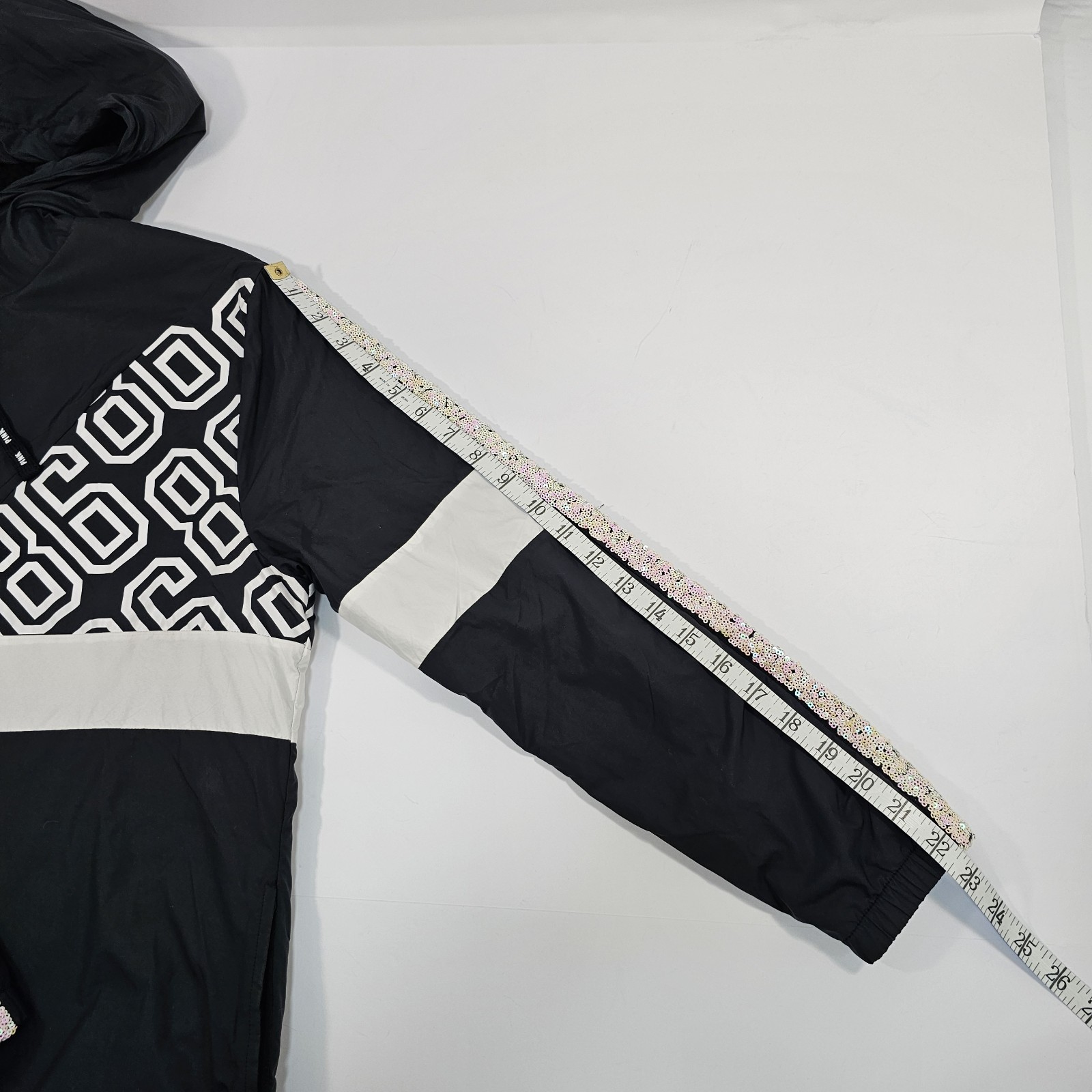Victoria Secret PINK Sherpa Lined Campus Full Zip Anorak Black White Size XS/S