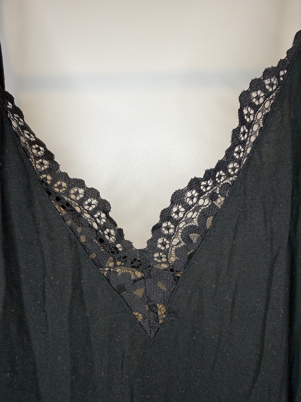 как выглядит Victoria Secret Soft Modal Lace Trim Mini Slip Sleep Dress Black Large V-Neck фото